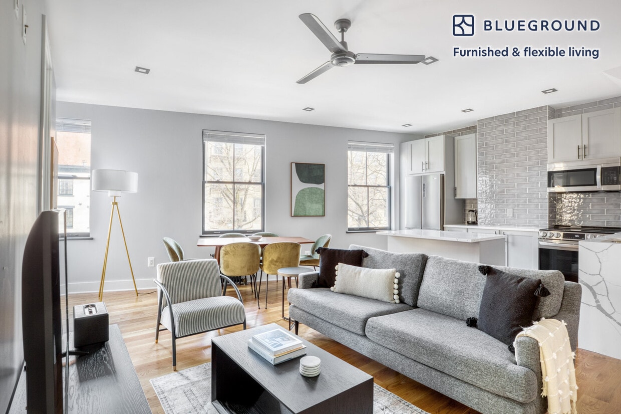 Discover the best of New York, with this three bedroom apartment in West Village with views over the city. It’ll be easy to simply show up and start living in this furnished apartment with its fully equipped kitchen, living room, and our dedicated, on-the-ground support. (ID #NYC1098) The advertised rate of $16,560/month is the lowest available price, based on a 12 month(s) stay with a move-in date of March 28, 2026. Rates vary depending on the duration of stay, season, and other parameters. For exact pricing and additional pricing components, please visit our website and enter your desired move-in and move-out dates. The rate is applicable when billed upfront; it can be higher if billed in multiple payments. Brokers are welcome to reach out. Were you looking for an unfurnished lease? Try Blueground instead and upgrade from unfurnished to furnished living: - Furnished at rates comparable to unfurnished - No setup or furniture costs - save thousands - Move-in ready - save time, just bring your suitcase Designed with you in mind Gorgeous furniture, fully equipped kitchen, smart TV, and a premium wireless speaker are just a few of the amenities you’ll find inside this three bedroom apartment. Ideally located in New York, you’ll find a lot to love outside as well. When you’re ready to relax, you’ll be happy to discover every Blueground bedroom comes with superior quality mattresses, fully stocked linens, and cozy towels. We handle everything so you can simply show up and start living. This apartment also offers in-apartment laundry. Sleeping arrangements Queen Bed, 63in/160cm Queen Bed, 63in/160cm Double Bed, 55in/140cm Amenities Building amenities unique to this three bedroom apartment include an on-site: - Dryer - Washing machine - Pets allowed Arrival and ongoing support The entire apartment is yours to enjoy! Throughout your stay, you’ll have access to our Client Experience team through the Blueground App. You can schedule additional cleanings, submit maintenance requests, and view our neighborhood recommendations with just a few taps. We’ll share all details upon confirmation of your stay. Ideally Located This furnished rental is located in the West Village. Cute storefronts and some cobblestone streets give the charming neighborhood the feel of a quaint small town. Populated with shoppers, diners and art lovers. The historically artistic area has numerous piano bars, cabarets, and theaters to discover. Both Times Square and Wall Street are just 15 minutes away by subway. Other things to note This Blueground apartment has flexible lease options, allowing you to book it for one month, a year, or more. Pets are welcome, though weight limits and breed restrictions apply and may incur fees. Please keep in mind that this is a walk up building. Brokes CYOF. We take great pride in ensuring every photo displayed is shot in our own units with our actual furnishings. That said, we regularly refresh our decor and furniture arrangement, which may differ from what’s pictured. Also note - This apartment is located on a busy street - Noise from the nearby nightlife can sometimes be heard late at night [SI]