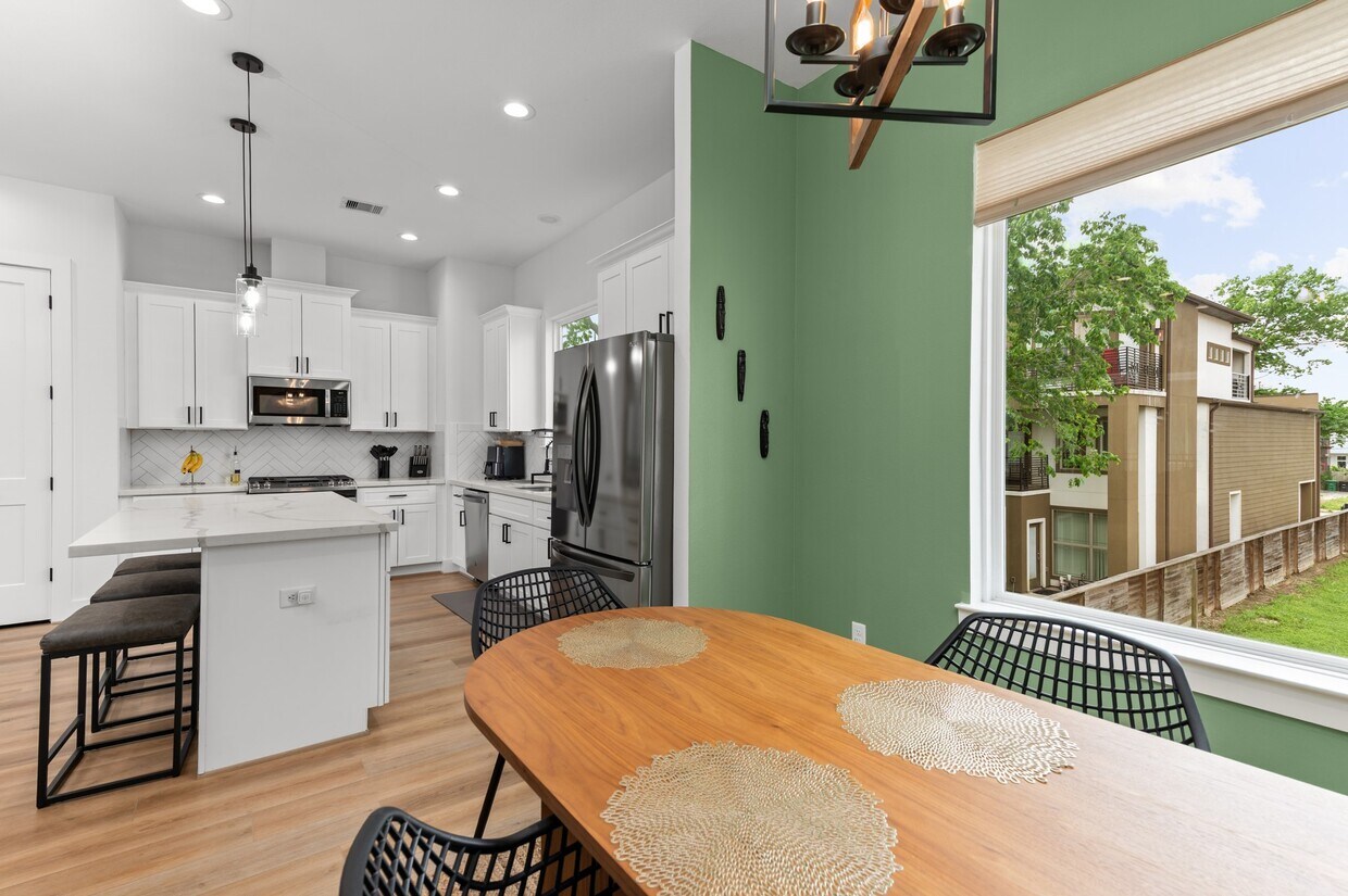 Welcome home to this stunning 3-story residence tucked inside a GATED community just minutes from Midtown and Downtown Houston! This thoughtfully designed floor plan features 3 bedrooms and 3.5 baths,offering both style and functionality. Step inside to discover soaring ceilings,neutral tones,and walls of windows that flood the space with NATURAL LIGHT. The open-concept second floor is perfect for entertaining,with a chef-inspired kitchen boasting stainless steel appliances. Enjoy indoor-outdoor living with a COVERED BALCONY,ideal for relaxing year-round. Retreat to the private third-floor primary suite,complete with oversized windows,a walk-in closet,and a spa-like ensuite with a soaking tub,upgraded double vanity,and separate shower. The first and third-floor secondary bedrooms each come with private ensuite bathrooms,offering comfort and privacy. Washer,Dryer & Refrigerator INCLUDED! Schedule your showing today! MLS# 24912575