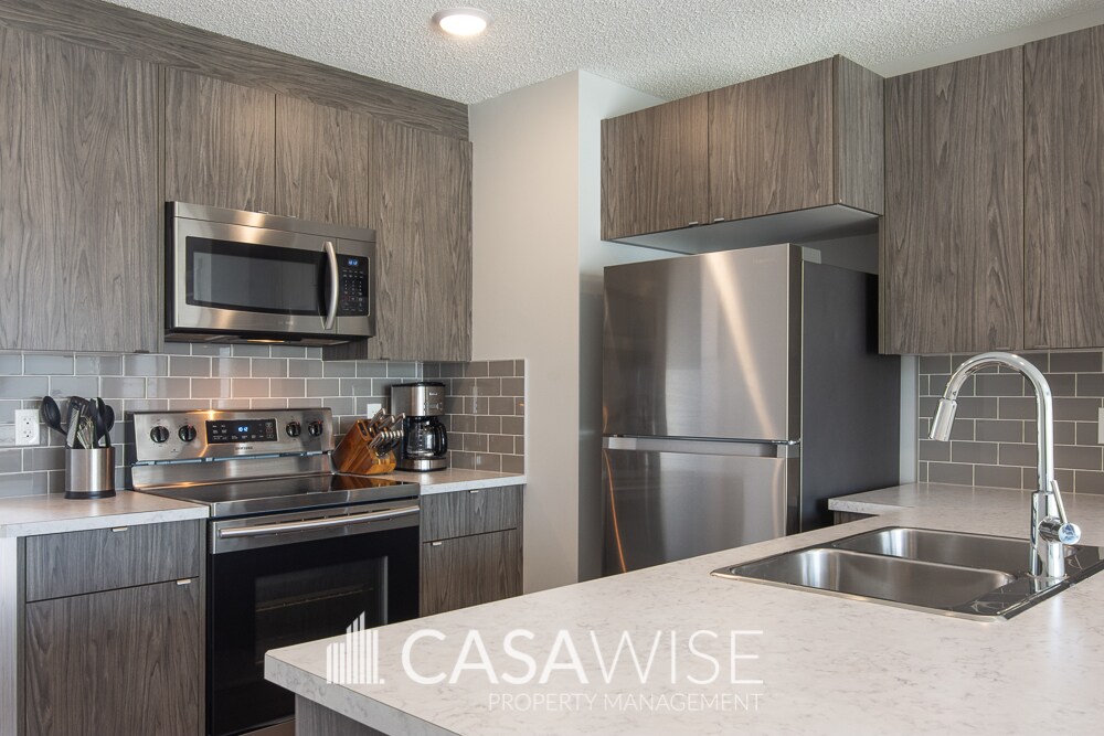 BEAUTIFUL 1-Bed/1-Bath Garden Suite With Patio Access in Chappelle! This modern garage suite comes fully upgraded and includes central air conditioning for year-round comfort, as well as a private patio to enjoy the fresh air! Ideal for those looking for a bright, functional, and stylish space. • U-shaped kitchen with stainless steel appliances, perfect for cooking and entertaining. • Laminate countertops and a stylish subway tile backsplash for a contemporary look. • Bright and comfortable living area with modern, neutral finishes. • Cozy, spacious bedroom with a walk-in closet. • Ensuite bathroom featuring a front-load washer and dryer for added convenience. • Additional linen storage in the laundry area. • Durable vinyl plank flooring throughout the main living areas. • Central air conditioning for year-round comfort. • Private patio for relaxing outdoors. • Street parking available; snow removal is the tenant's responsibility. • Unit is not furnished! ***Please note: Viewings will begin on April 1. Situated in southwest Edmonton's Chappelle community, this home offers access to parks, schools, and nearby walking trails. Enjoy close proximity to shopping and dining, Currents of Windermere, and Jagare Ridge Golf Club, with quick access to Anthony Henday for easy commuting. Tenant is responsible for 30% of the total monthly utility bill, shared with the main unit tenant (who covers 70%). One small dog is negotiable with a fee of $50/month. Pet approval is at the time of the application and not guaranteed thereafter. No Smoking. Professionally managed by Casawise Management Only applications received through our site will be processed: If interested, please provide us with your name, phone number, available times for viewings and a little background about you (when do you need the unit for, how many people would be living in the unit, etc.). Thank you!