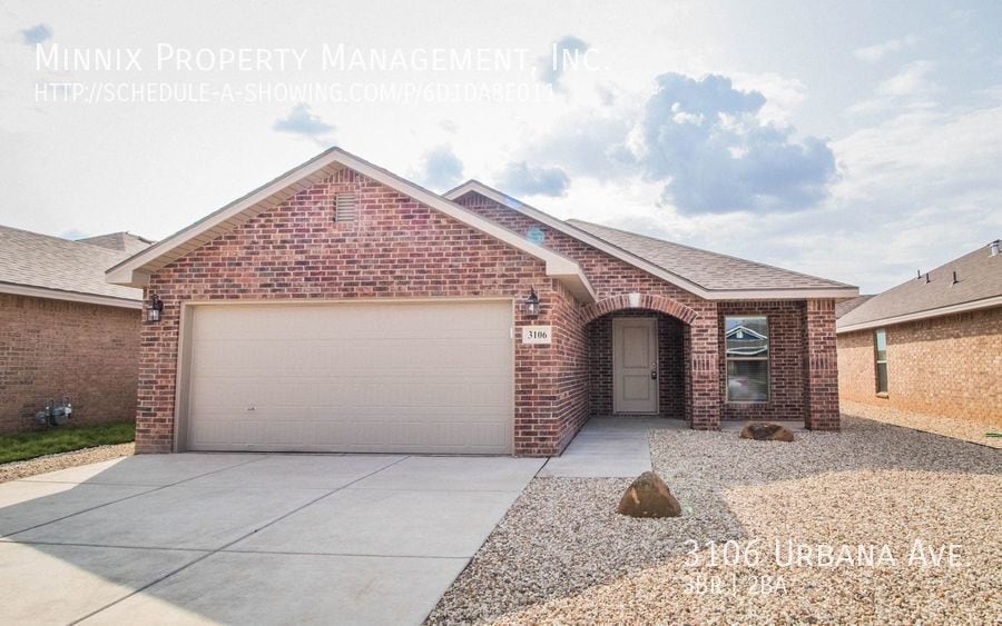 ---- SCHEDULE A SHOWING ONLINE AT: ---- Offered by Minnix Property Management. This home is available for a 12-month lease. This property is available for self-guided tours! 8 am to 8 pm, 7 days a week! We comply with Fair Housing Guidelines when it comes to Service Animals and Emotional Support Animals. $0 Security deposit when using our deposit alternative that reduces your move costs. You may still use a traditional cash security deposit. Vacant properties are held no more than 21-days. A deposit is required to hold the property. Renter’s insurance is required for all properties. Flexible Payments – Administered by Flex Pay when you want so you can do more of what you want. Flex is an app that pays your rent on the first and allows you to pay back on your terms. We’ve partnered with Flex because it’s simply one of the easiest, most intuitive services we have seen. Early Termination Options In this ever-changing world, we know that things change. Minnix Property Management works with you when the need for an early termination arises. Please contact the main office at for details and guidelines. Photos and Video may not be an exact representation of this property. Information herein deemed reliable but not guaranteed. $25 Pet Rent $500 Pet Deposit Per Pet Central Heat And Air Covered Back Patio Lubbock Independent School District Pets Yes (1 Pet Limit) Sod In Backyard Tenant Pays Electric/Water/Gas Xeriscape Front Yard Zero Deposit Move In Option