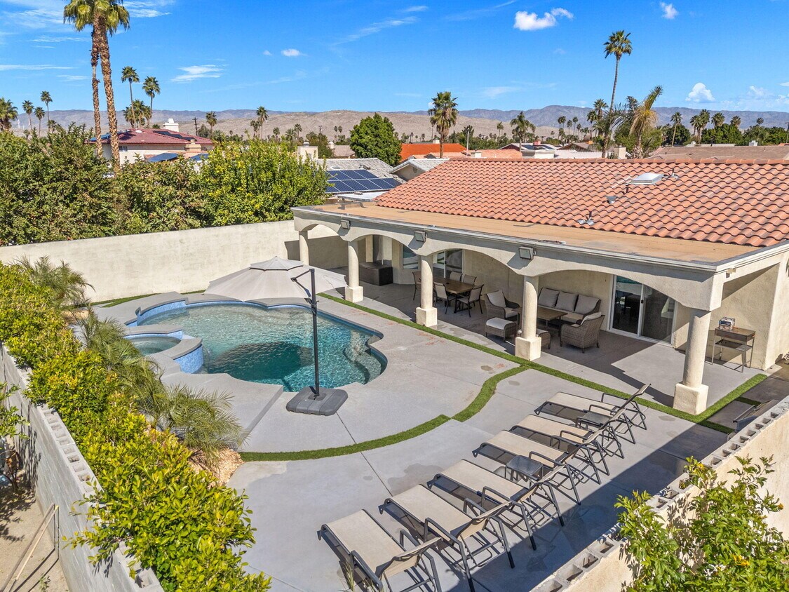 This fully furnished property captures breathtaking mountain views from the sparkling pool and expansive outdoor living spaces. Designed with entertaining in mind,the home offers a seamless flow and thoughtfully crafted architectural details that create both comfort and sophistication. Step through the front door into a light-filled great room that effortlessly connects to the spacious living area and beautifully appointed kitchen. The open-concept floor plan is enhanced by soaring ceilings,abundant natural light,and high-end finishes throughout,creating an inviting yet refined atmosphere. Recently remodeled,the home showcases modern upgrades at every turn,including a PebbleTec pool finish and an expansive patio ideal for hosting gatherings or enjoying quiet desert evenings under the stars. This property delivers the perfect blend of style,comfort,and desert living. To fill out an application visit this link. There is a $39 fee: MLS # 219143821