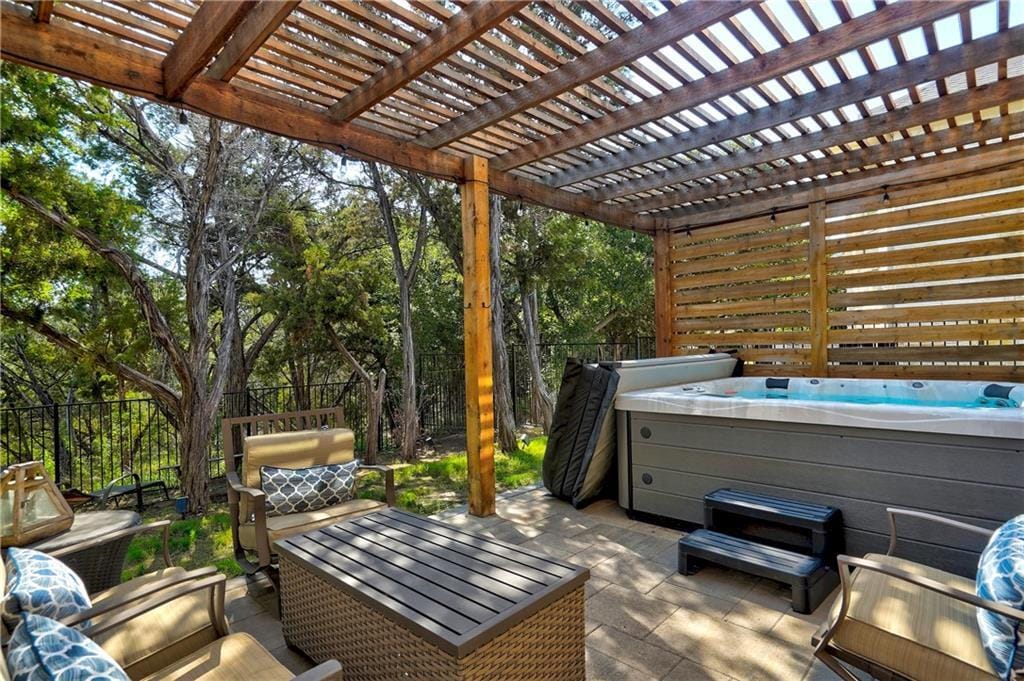Welcome to this fantastic single-story open concept home located in the middle of Rough Hollow of Lakeway. This gorgeous home features a detached CASITA for guests/family or used as a private office studio. Ceramic wood style tile in the main areas, tall ceilings, with an abundance of light adorn this 3 bedroom/3.5 half bath home. Level lot with fenced backyard that backs to a private greenbelt. Tons of shade and perfect sun orientation to enjoy your backyard even in the summer months! Relax in your own private HOT TUB SPA under a pergola off the back covered deck. The front courtyard features an outdoor fireplace and cozy seating area for the cooler months. This 2018 built gem is in excellent condition and perfect for entertaining year-round. The kitchen features a huge center island, deep sink, pendant lighting, plenty of cabinetry, and stainless appliances. Dining area, kitchen, and living room are all connected in one large open space. Separate laundry room w washer/dryer connections. Rough Hollow is an active lifestyle community loaded with amenities and fun for all ages. The Highland Village Center w/swimming pools for kids and adults-only, lazy river, playgrounds, sport courts, tennis courts, soccer fields, etc. is just a short stroll from this home. Also, you will find easy access to the RH Marina, The Grill restaurant, lake access, and tons of hike/bike trails surrounding the neighborhood. Elementary, day care, and Junior High schools are only minutes away and you get to avoid busy highways to get there. Finally, several gyms, World of Tennis, The Hills of Lakeway signature golf courses are only a five-minute drive from here. Relax and enjoy the Rough Life" in this charming and conveniently located home. Available Now. Call today to lock this one down!"
