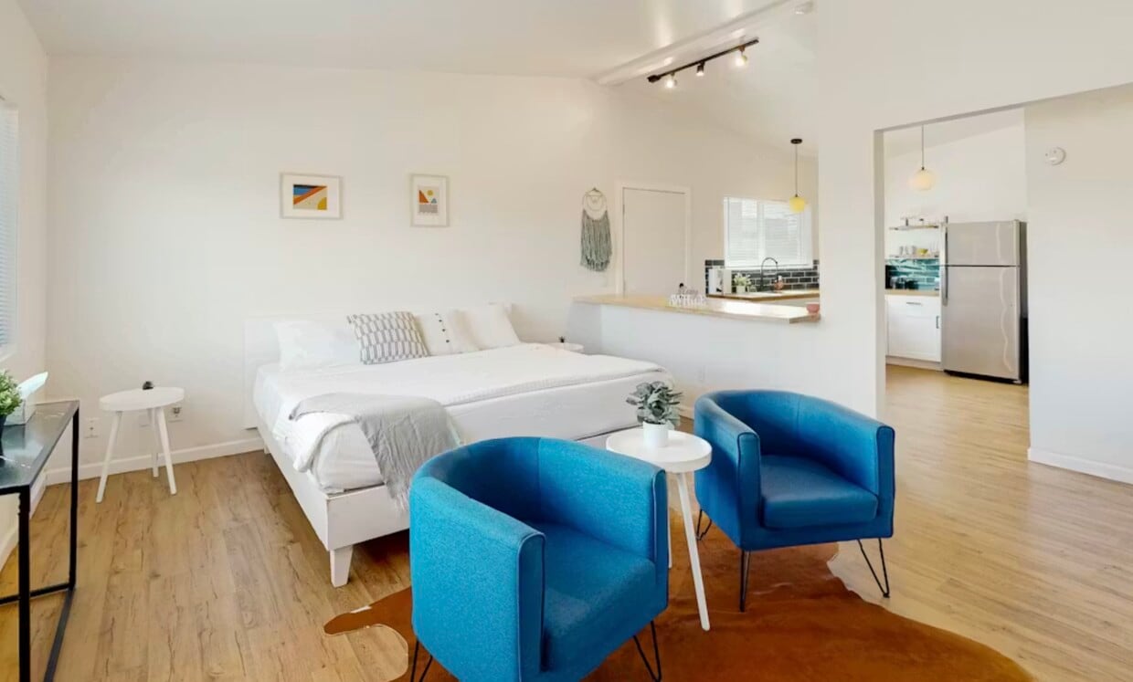 Modern Studio with Private Yard & Covered Parking – Near University of Arizona This bright, thoughtfully designed studio apartment offers comfort, privacy, and convenience in a quiet Tucson neighborhood, just 10 minutes from the University of Arizona. The open-concept space features modern finishes, great natural light, and a flexible layout that comfortably accommodates living, sleeping, and dining areas. A full kitchen with updated cabinetry, ample counter space, and a full-size refrigerator makes everyday living easy. Step outside to your own private backyard, fully enclosed and perfect for relaxing, outdoor dining, or enjoying Tucson evenings. A covered parking space is included for added convenience. Features include: • Studio layout with open, airy design • Air conditioning and heating • Private, fenced backyard space • Covered parking included • Full kitchen with modern finishes • Wood-style flooring throughout • Large windows with natural light Location highlights: • Within 10 minutes of the University of Arizona • Close to downtown Tucson, shopping, dining, and major roadways • Quiet residential setting Ideal for a student, graduate student, or professional seeking a clean, modern space with outdoor privacy.