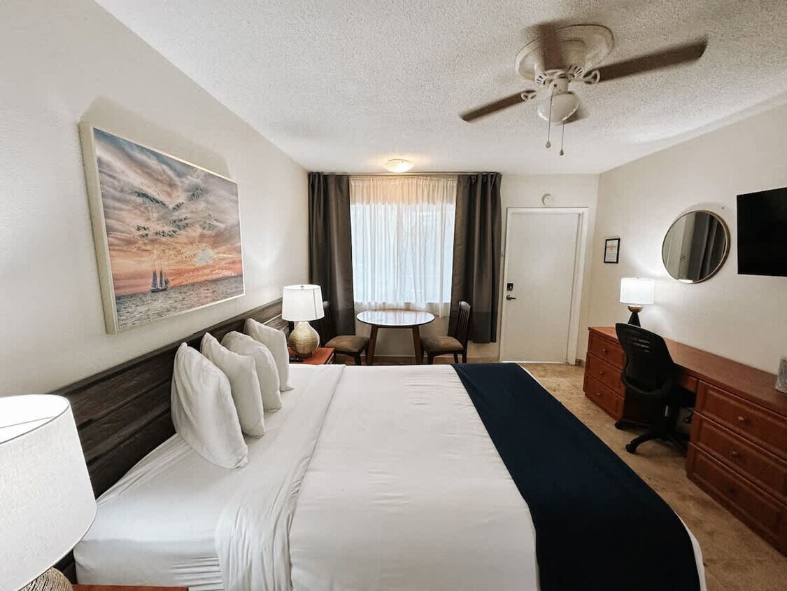The advertised rate of $2,904/month is the lowest available price, based on a 30 day(s) stay with a move-in date of December 31, 2028. Rates vary depending on the duration of stay, season, and other parameters. For exact pricing and additional pricing components, please visit our website and enter your desired move-in and move-out dates. The rate is applicable when billed upfront; it can be higher if billed in multiple payments. Feel at home in this spacious studio apartment located in the heart of Pompano Beach, Florida, within the 20-unit Waves complex. This apartment features a living area with a seating area and a desk workspace. Guests have shared access to the gated pool, BBQ grill area, and outdoor seating spaces throughout the property. One free on-site parking spot is included per reservation. Pets are welcome for an additional fee; advance notification with pet details is required to make proper arrangements. The apartment is within walking distance of the beach and ample restaurants, nightlife, and attractions. It's about 30 minutes from Fort Lauderdale-Hollywood International Airport. Public transportation and rideshare services are readily available, and the area is bike-friendly. Guests must send a photo of a valid ID that matches the name on the reservation via message before receiving check-in instructions. Occupancy limits are strictly enforced per city ordinance, and full legal names of guests must be provided upon booking. Only standard-size personal vehicles are permitted for parking, and no trailers, boats, vessels, recreational vehicles, buses, box trucks, oversize, or commercial vehicles are allowed; a $500 fine will be imposed for violations. No parties, events, or gatherings are allowed; any guest found to be having a party will be required to leave immediately without a refund and will incur a $500 fine. Quiet hours are from 10 PM to 9 AM; any noise complaint will result in a $500 fine. No indoor smoking is allowed; outdoor smoking at least 10 feet from the building is permitted, and all windows/doors to the unit must remain closed while smoking outdoors; a $500 fine will be imposed for violations. If you would like to bring a pet, you must inquire before booking regarding breed limitations and agree to the pet policy; there is a $100 non-refundable fee per pet. Check-in is any time 4 PM or later. The property is monitored with exterior cameras that capture and record audio and video; unplugging, moving, or any alteration of the security cameras or any of its cords, base station, or any other parts/apparatus will result in a $1000 fine. [SI]
