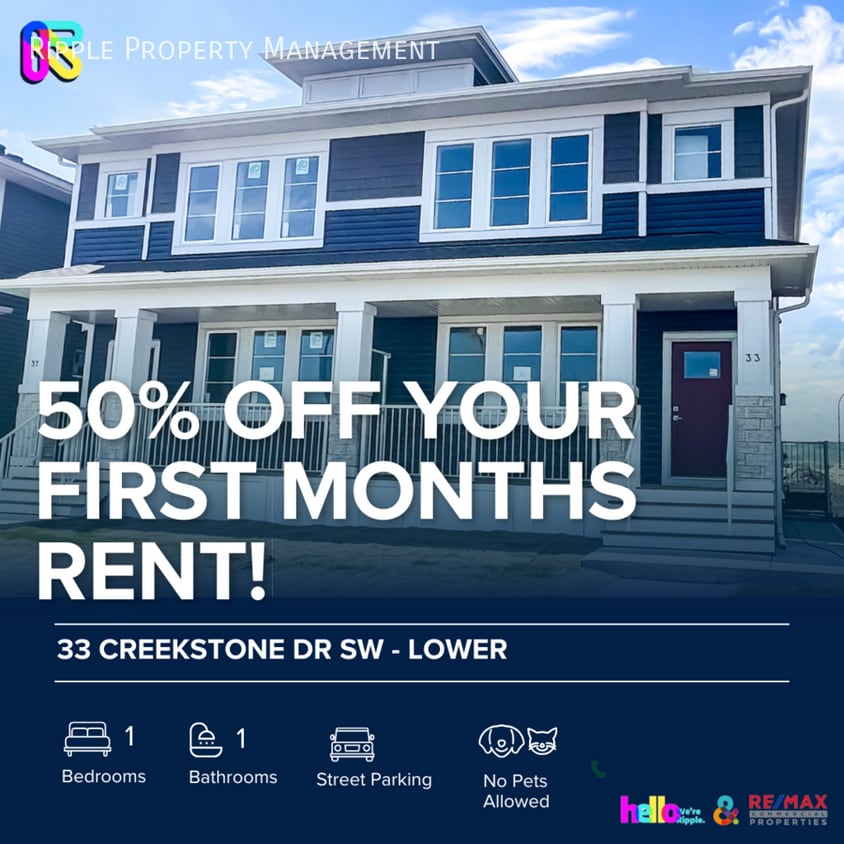 AMAZING MODERN 1 BED/ 1 BATH BASEMENT SUITE ONLY! VIDEO TOUR: Interested in this unit? BOOK HERE: Use our automated booking system, ShowMojo, to schedule a showing. You'll receive a response within a few hours with available dates and times. Note: Showings are conducted in groups, not one-on-one. IMPORTANT INFORMATION: - Parking: Street Parking - Pets: No Pets Allowed - Smoking: Non-Smoking - Storage: No - Laundry: In- Suite Laundry UTILITIES: Shared Utility Unit: This unit shares a utility meter with another unit. Utility costs will be split between the two units with 60% of the cost being paid by the main (upper) unit and 40% of the cost being paid by the secondary (lower) unit. A monthly utility deposit of $350 for the main unit and $225 for the secondary unit will be charged for the first three months of the tenancy. UNIT FEATURES: -Main is NOT included. The main level will tenant Occupied. - Separate entrance for basement - Kitchen has tiles and back splash with stone countertops and Stainless Steel Appliances - One private bedroom - Hardwood and tile flooring COMMUNITY FEATURES: This property is located in a vibrant community with easy access to: - Shopping and grocery stores. - Tennis courts and recreational facilities. - Public transit (bus and train). - Parks, bike paths, river access, and playgrounds. A LEADER IN CALGARY PROPERTY MANAGEMENT This property is managed by Ripple Property Management—a name synonymous with quality and trust. With 15 years of expertise and a commitment to excellence, we make property management and renting a seamless and enjoyable experience. View more properties managed by Ripple Property Management: