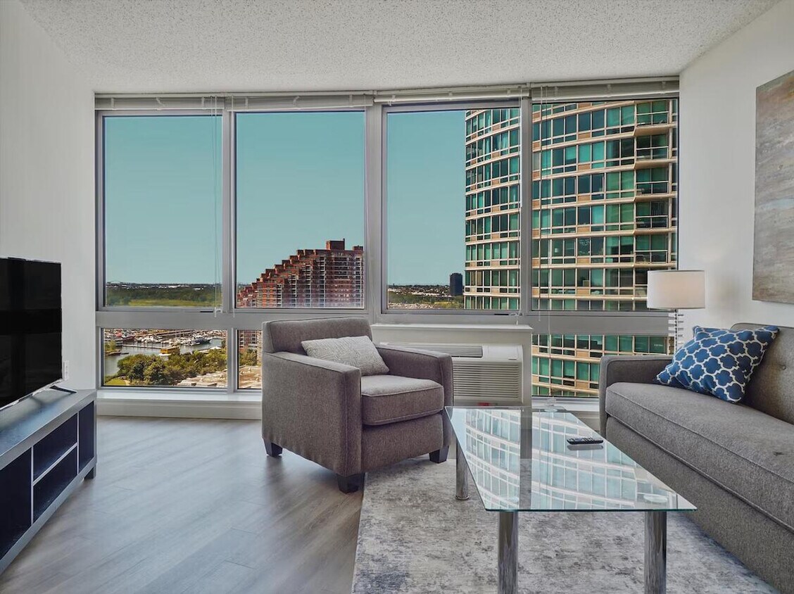 The advertised rate of $4,064/month is the lowest available price, based on a 1 month(s) and 2 day(s) stay with a move-in date of February 28, 2026. Rates vary depending on the duration of stay, season, and other parameters. For exact pricing and additional pricing components, please visit our website and enter your desired move-in and move-out dates. The rate is applicable when billed upfront; it can be higher if billed in multiple payments. Set along Jersey City’s waterfront, this apartment pairs comfort-focused living with stunning views of the Manhattan skyline. Inside, you'll find wood-style floors, ELFA closets, an in-unit washer and dryer, and a spa-inspired bath. Outside, enjoy a sundeck with grilling areas, a yoga studio, and bike storage. Located near the Powerhouse Arts District, with galleries and cafes nearby, and easy access to NYC by road, rail, or ferry, it's city living with a relaxed edge. This apartment offers prime views of the Manhattan skyline and easy access to the Holland Tunnel, Liberty State Park, and nearby transit options. With a strong corporate presence and walkable streets, many residents enjoy short commutes or bike rides to work. The amenities are well-rounded, including yoga and boxing studios, a library, a kids club, and a golf simulator room. Outdoors, there’s a sundeck with grilling areas, secure bike storage, and garage parking. The Powerhouse Arts District brings a creative, eclectic energy to the area, with galleries, cafes, and bars that reflect the neighborhood’s evolving character. It’s a dynamic setting that blends convenience with culture. With a pet-friendly, smoke-free environment and energy-efficient appliances throughout, the community is built for modern living. It's quiet, practical, and connected to everything Jersey City has to offer. [SI]