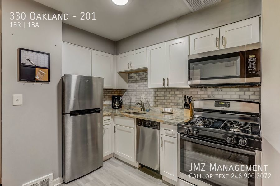 Located only 1 block away from Main St. this apartment is located only minutes away from all of the dining, shopping and nightlife Royal Oak has to offer. Building HVAC and electric updated in 2021. Floor, Kitchen and appliances updated in 2022. This unit comes with 1 free parking space, with additional street and structure parking just steps away. Additional $40/month includes water and sewer. No dogs allowed, Cats for an additional $25/month. No smoking. This promotional lease amount is for the first 6 months of the lease and then rent goes to $1,200/month NO SHOWINGS UNTIL ON OR BEFORE 5/15/2026. PLEASE VISIT OUR WEBSITE AT jmzmanagement . com TO APPLY OR FIND ADDITIONAL INFORMATION.