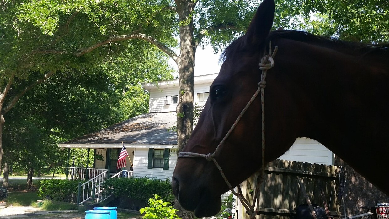 Agent is the owner of this home. Enjoy the peaceful setting of the country,but the convenience of being within 3.5 miles from the new Publix on Silverbluff Road. restaurants,and shopping. Fenced paddock with one walkthrough gate and one drive through cattle gate. Covered shed with cattle gate corral to enclose a horse if needed. There is a small shed that I used for my saddles. There is another small shed that has the water heater in it. 9 x 20 storage shed. Primary bedroom on the main level with a walk-in closet and another separate closet. 2 bedrooms upstairs are small with vaulted ceilings with 2 large double closets. There is another room(bonus) downstairs that has an exterior door to the back deck. This room has been used as a bedroom. It has 2 double closets in it as well. Kitchen is loaded with cabinets. Flat surface stove. Side by side refrigerator,pantry in kitchen. Extra storage under stairwell. High vaulted ceilings in living room. Oversized laundry room. 22 x 6 front porch with swing. 27 x 18 back deck. Plan to paint it when weather warms up. The well is located in the open area at the top of the hill.