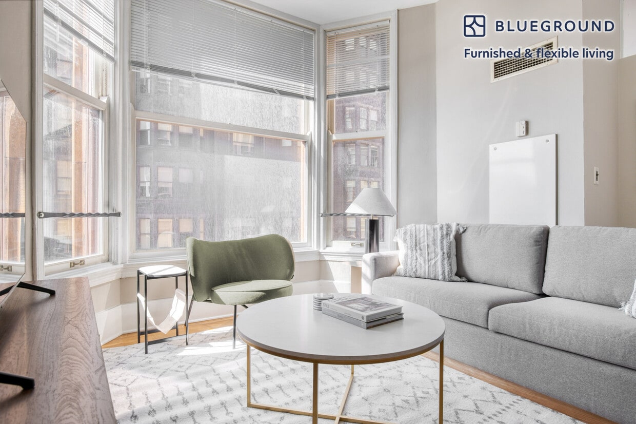 Show up and start living from day one in Chicago with this stylish two bedroom Blueground apartment. You’ll love coming home to this thoughtfully furnished, beautifully designed, and fully equipped The Loop home with stunning views over the city. (ID #CHI813) The advertised rate of $3,330/month is the lowest available price, based on a 12 month(s) stay with a move-in date of April 22, 2026. Rates vary depending on the duration of stay, season, and other parameters. For exact pricing and additional pricing components, please visit our website and enter your desired move-in and move-out dates. The rate is applicable when billed upfront; it can be higher if billed in multiple payments. Brokers are welcome to reach out. Were you looking for an unfurnished lease? Try Blueground instead and upgrade from unfurnished to furnished living: - Furnished at rates comparable to unfurnished - No setup or furniture costs - save thousands - Move-in ready - save time, just bring your suitcase Designed with you in mind Thoughtfully designed with bespoke finishes, modern furnishings, and a fully equipped kitchen, you’ll enjoy that “I’m home” feeling with this Blueground apartment. Whether you’re lounging in your cozy living room streaming the latest and greatest entertainment on the smart TV or premium wireless speaker, or getting some well-earned rest on the superior quality mattress with fully stocked linens, you’ll fall in love with everything this The Loop apartment has to offer. Sleeping arrangements King Bed, 70.8in/180cm Queen Bed, 63in/160cm Amenities Building amenities unique to this two bedroom apartment include an on-site: - Doorman - Dryer in building - Elevator - Washing machine in building - Pets allowed Arrival and ongoing support The entire apartment is yours to enjoy! Throughout your stay, you’ll have access to our Client Experience team through the Blueground App. You can schedule additional cleanings, submit maintenance requests, and view our neighborhood recommendations with just a few taps. We’ll share all details upon confirmation of your stay. Ideally Located This furnished rental is situated in the most dynamic and convenient place to live in Chicago, The Loop. With its endless shopping, fine dining, stunning park, river and lake views, and entertainment opportunities, everything is possible at a moment’s notice. The area is a cultural getaway for professionals and students, who can combine work with pleasure. Discover landmark buildings like the Willis Tower and The Art Institute of Chicago. Millenium Park, near Lake Michigan, is always worth a visit. The Loop is within reach of accessible transportation, offering non-stop public transit, buses, and taxis. Union Station is approximately a 10 minute train ride. Other things to note Building amenities may have an extra cost. This Blueground apartment has flexible lease options, allowing you to book it for one month, a year, or more. Pets are welcome, though weight limits and breed restrictions apply and may incur fees. We take great pride in ensuring every photo displayed is shot in our own units with our actual furnishings. That said, we regularly refresh our decor and furniture arrangement, which may differ from what’s pictured. Also note - There have been reported instances of homeless populations nearby - This apartment is located near a railway, so expect to hear moderate noise when trains pass - The apartment is in a busy location, so it will be noisy when your windows are open [SI]