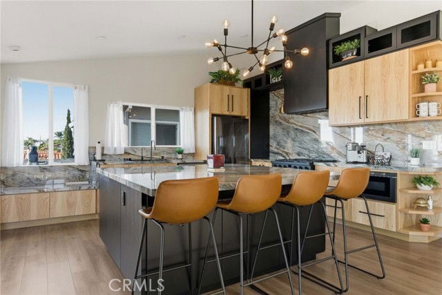 - Fully remodeled upstairs unit of a duplex offering 2 bedrooms and 2 bathrooms with stunning ocean views from the living room, kitchen, and office space just off the kitchen perfect for working from home. The chef s kitchen features an oversized 7 x 6 island, soft-close drawers and cabinetry, natural stained white oak paired with matte black cabinets, and premium appliances including a 6-burner Cosmo gas range, 36 Cosmo gas oven, Samsung dishwasher and refrigerator, and a black stainless-steel sink. The open living area is anchored by a 65 electric fireplace, designer wall colors, dimmers on all ceiling lights, USB/USC outlets, and wall-mounted TVs in every room (included). Laminate flooring throughout with 5½ baseboards add a modern, cohesive feel. Double-pane windows in the kitchen, living room, and office enhance comfort and efficiency. Spa-inspired bathrooms include a deep soaking tub with extra-tall glass doors, defogging mirror with three-mode lighting, handheld and rain shower heads, heated towel bars, smart toilet, and Bluetooth exhaust fan. The primary suite offers two large closets, ceiling fan, and an ensuite bathroom with a walk-in shower featuring a built-in seat, rain shower head, six body sprays, and heated towel rack. Enjoy outdoor living with a large private balcony plus a shared front deck. Additional features include one-car garage and driveway parking. A rare opportunity to rent a beautifully upgraded unit with high-end finishes and ocean views. Listing provided by: Foley, Bonnie of First Team Real Estate LA State License 01008773 Listing posted by Orange County [SYNDID 4150610 01242026]