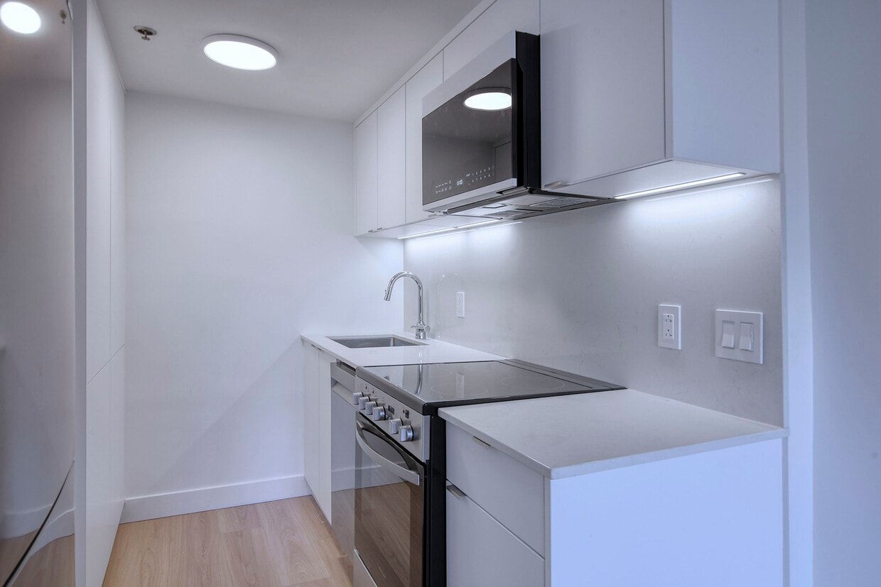 appartement rénové à une chambre à coucher - loyer gratuit jusqu'à deux mois - 1 salle de bain - étage 4 - environ 436.3 pieds carrés - disponible dès maintenant $1595 - eau inclus dans le loyer caractéristiques de l'appartement - balcon - cuisine ouverte - plaques de cuisson électrique - réfrigérateur - four - micro-ondes - lave-vaisselle - baignoire caractéristiques du bâtiment - année de construction 1963 - 13 étages - ascenseur - buanderie - armoire à colis Canada Post - entrée à accès contrôlé - caméras de sécurité - concierge - stationnement intérieur $225 par mois - stationnement extérieur $175 par mois emplacement - station de métro la plus proche McGill renovated one bedroom suite - up to two months free rent - 1 bathroom - located on floor 4 - approximately 436.3 square feet - available now for $1595 - water included in rent suite features - balcony - open concept kitchen - electrical stove - fridge - oven - microwave - dishwasher - bathtub building features - construction year 1963 - 13 floors - elevator - onsite laundry - Canada Post parcel locker - controlled access entry - security cameras - concierge - indoor parking $225 per month - outdoor parking $175 per month location - closest subway station McGill