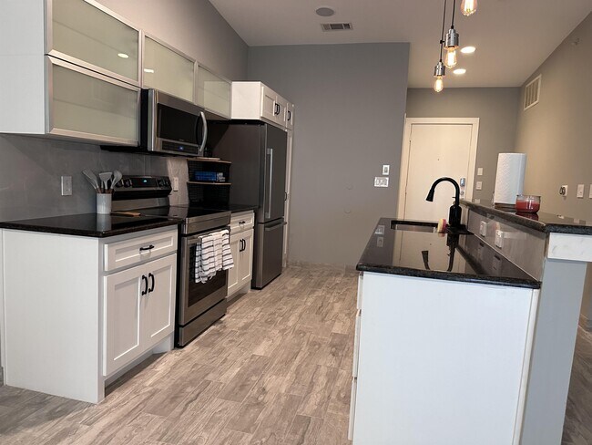 FURNISHED Urban living minutes away from the Convention Center and Medical District, in the shadow of the Lorenzo Hotel. This property is a multipurpose space with a large open area that allows for many arrangements. Unique roll up garage style door opens up to patio with views of Downtown, has remote controlled roll up shade. Furnished with Murphy bed to give additional living space when not sleeping, large sectional sofa, Flat Screen TV, and dining table with 6 chairs, in addition to washer, dryer, and refrigerator. This unit also has built in surround sound speakers and LED lighting. The updated bathroom has a large walk in shower. Space saving barn door on custom walk-in-closet maximizes your storage. Secure garage parking with assigned (#19) space. Eco-conscious green design with rain capture system. Located just south of Downtown where there are plenty of choices within walking distance including music venues, art galleries, diverse restaurants, and easy access to major highways. This property does not accept vouchers or section 8 tenants. Urban living minutes away from the Convention Center and Medical District, in the shadow of the Lorenzo Hotel. This property is a multipurpose space with a large open area that allows for many arrangements. Unique roll up garage style door opens up to patio with views of Downtown, has remote controlled roll up shade. Several Furnishing Included such as: Murphy Bed to give additional living space when not sleeping, large sectional sofa, Flat Screen TV, and dining table with 6 chairs, in addition to washer, dryer, and refrigerator. This unit also has built in surround sound speakers and LED lighting. The updated bathroom has a large walk in shower. Space saving barn door on custom walk-in-closet maximizes your storage. Secure garage parking with assigned (#19) space. Eco-conscious green design with rain capture system. Located just south of Downtown where there are plenty of choices within walking distance including music venues, art galleries, diverse restaurants, and easy access to major highways. This property does not accept vouchers or section 8 tenants.