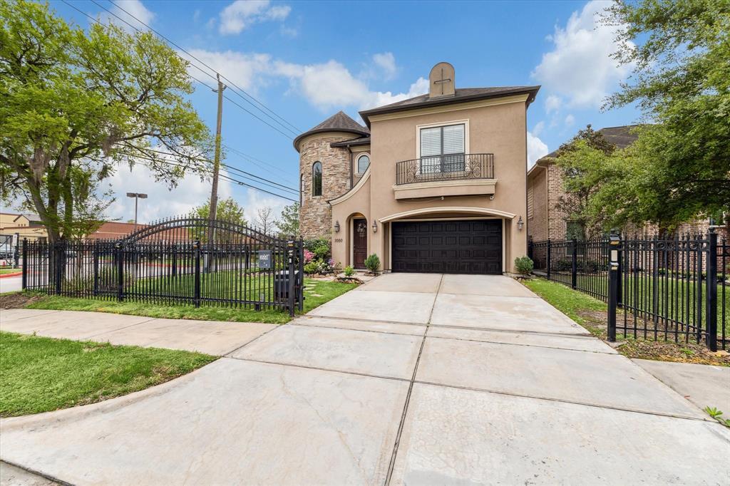 Gorgeous Gated Mediterranean with sparkling pool & over $60,000 in builder upgrades plus 3rd flr gamerm, home office, or 5th bedrm w full bath. Enter the Solid Wood door to be greeted by Handscraped Wood Flooring, Spiral Staircase, Formal Dining w Wine Grotto, & Views out to Pool. Island Kitchen boasts counter seating, built-in desk, Stainless Steel Appliances incl. Gas Cooktop, huge walk-in Pantry, & informal breakfast/dining area - Open to Spacious Living Room w Gaslog Fireplace. 2nd Flr Extra Large Primary w 3 walk-in closets, dual vanities, glass enclosed shower, & full sized Jacuzzi. Great sized 2ndary bedrms; two w shared bath & one w private bath. Wood Floors, plantation shutters, & high end features thru-out! Relaxing outdoor oasis meant for entertaining: oversized covered patio, fireplace, gas grill connections, sink connections, storage shed, astro-turf, & recently installed sparkling pool with waterfall & outdoor shower.