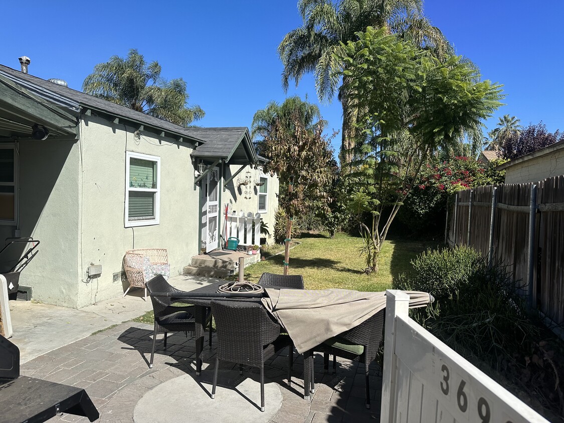 This is a private granny house. In Riverside CA 92503. One parking. In the driveway which is gated. Your own private yard. Must be kept up by tenant. You have a washer hook up only with cold water. Line poles in yard for laundry. Wall heater. And window units, one in bedroom and one in the living room. You may have a small dog, Weight limit 20 pounds, or a cat. Close to Tyler Mall, five minutes away from the University of California Baptist. 10 minutes away from RCC. This is a very quiet neighborhood. Thank you so much on your interest.