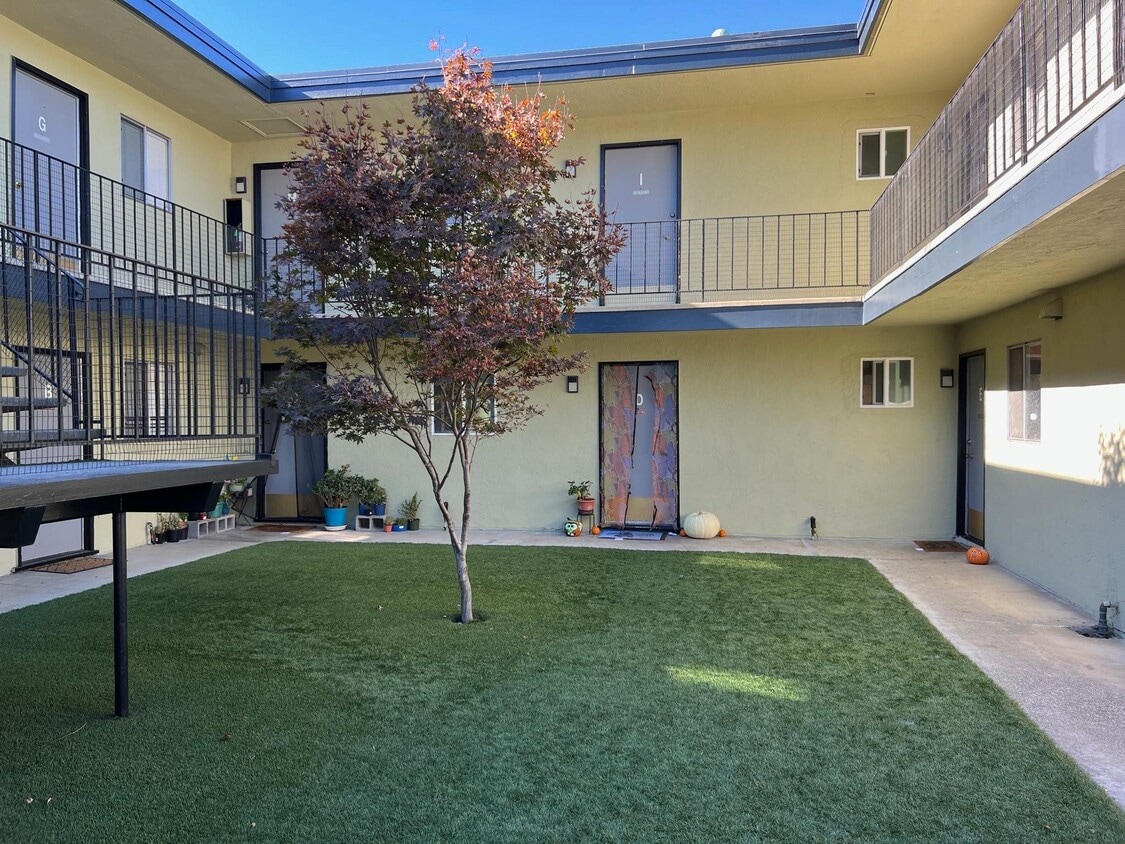 Updated One bedroom apartment in quaint property conveniently located on the corner of Mulberry & Thornton! New carpet and freshly painted throughout! Kitchen offers granite counters,stainless steel sink,newer appliances including built-in microwave,ample cabinets provides many storage options and breakfast bar. Main living area with lush wall to wall carpet and slider access to private balcony. Bathroom features shower over tub with glass shower door and marble shower walls,marble countertop and nickel fixtures. Bedroom with wall to wall carpet and mirrored closet doors. Linen closet and oversized entry closet offer additional storage. Dedicated,covered parking space and on-site laundry. Water & garbage is included in the rent.