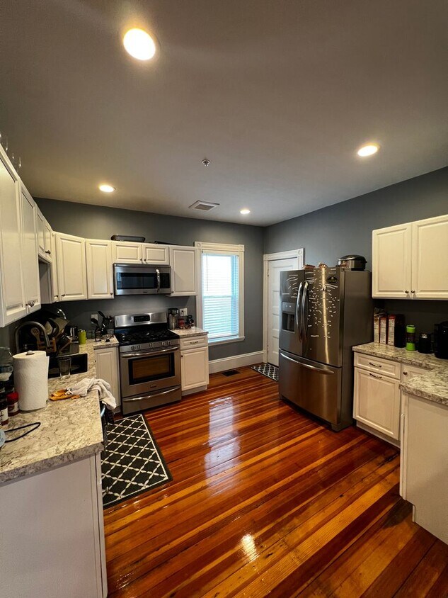 AVAILABLE SEPTEMBER 1ST - Beautiful, fully renovated condo quality 3 bed/2 bath. Open concept with huge living space, 3 large bedrooms, 2 full baths (1 ensuite), laundry in unit, hardwood, stainless steel kitchen. Private patio dedicate to unit. High efficiency HVAC, electric and on-demand hot water, all Mass Save compliant. Great residential location on a quiet street close to Fields Corner T stop. Easy street parking and driveway with tandem parking for 3 cars available to rent for an additional $200/month. Sorry no undergrads. Pets negotiable. Tenants pay for all utilities including water and sewer. 1st, last, security and 1 month broker fee applies.