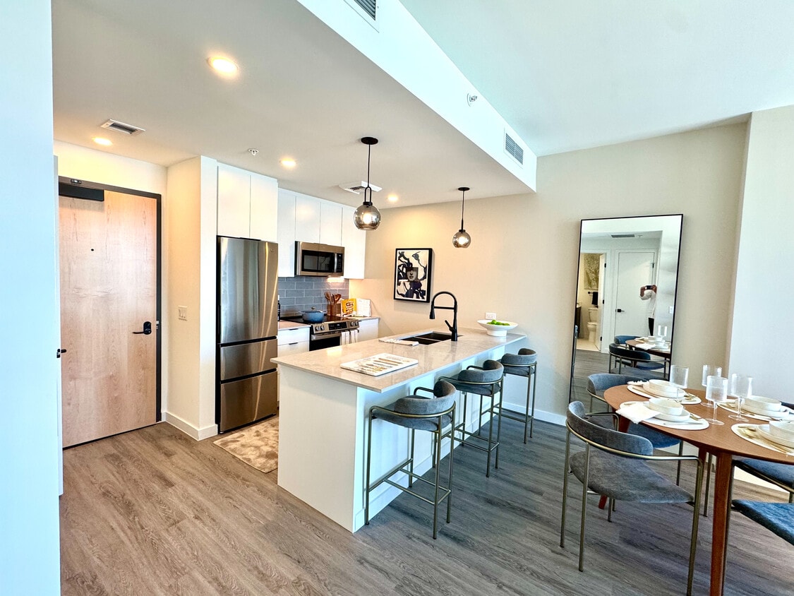 LOW DEPOSIT | LOW MOVE-IN COSTS | PET FRIENDLY | UNFURNISHED This bright apartment is filled with natural light and offers a peaceful garden view. Inside, you’ll find stainless steel appliances, quartzite countertops, elegant flooring, and a front-loading washer and dryer, combining style and convenience. Located in a prime area just outside Wynwood, close to Midtown and Edgewater, the community is surrounded by great restaurants, bars, and coffee shops, putting the best of Miami right at your doorstep. With options ranging from studios to 3-bedroom apartments, the community offers resort-style amenities to enhance your lifestyle, including a rooftop salty-water pool with temperature control and stunning city views, hot tub, sauna and cold plunges, separate BBQ stations for added privacy, co-working space, game room, and a dining room with a fully equipped kitchen. The 24-hour gym features all machines, free weights, and on-demand fitness classes. Schedule your tour today and make this bright, welcoming apartment your new home!