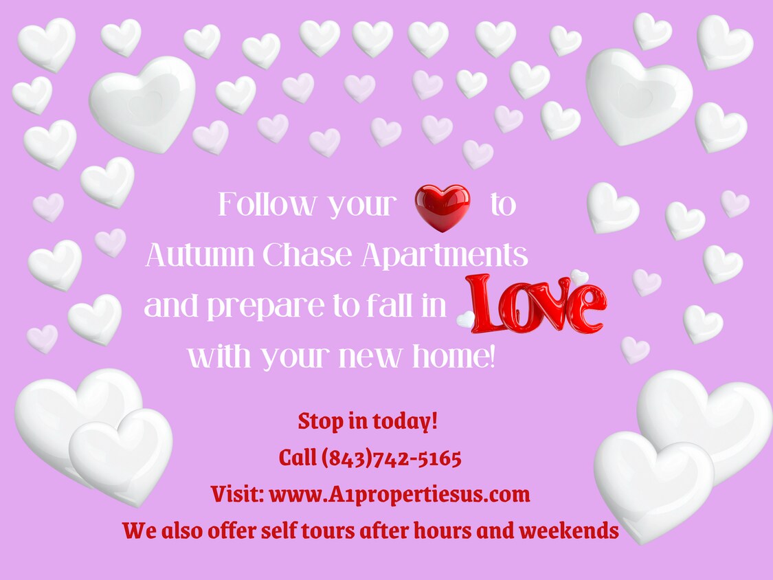 Private high-speed internet, basic cable, water, sewer, trash & pest control included are always included with all of our rents. We make it easy for you Autumn Chase Apartment Community is pleased to announce this amazing 2-bedroom 2-bathroom apartment with a washer & dryer for $1,395.00/month. Additional apartment features include: a private entrance, non-smoking, great closets, washer & dryer hookup**, plush w/w carpet or beautiful laminate flooring, high quality ceiling fans with built in lights, 2" high quality wood blinds, extra-large rooms, extra-large windows, extra-large full bath with gorgeous new vanities, lights and mirrors, washer, dryer, refrigerator with built in ice maker*, garbage disposal, stove, dishwasher, built in microwave, spacious counter tops with eat in bar top, tons of cabinet space, sunny and super clean, front door assigned parking, 3 ponds, fountains within lush immaculate grounds & landscaping, sparkling clean sidewalks and trash center, social areas with brand new picnic tables, grills and swings. *In select apartments Autumn Chase Apartment Community is close to everything important in Myrtle Beach including the gorgeous South Carolina beaches, 9 pickleball courts, parks for humans and fur babies) shows, golfing, 6 hall of fames, kayaking, paddle boarding, fishing, fireworks, live music, amazon, fed ex and so much more! We are pet friendly and welcome a maximum of 2 pets per apartment with a weight limit not to exceed 70lbs for the first pet and 100lbs combined for both pets. A one-time non-refundable pet fee of $250.00(per pet) is required along with canines paying a monthly pet rent of $25.00 per month. A photo of the pet and updated vaccine records are required. Canines are required to hold a renter's insurance policy with a minimum coverage of $500,000 with the landlord named as the additional insured within the policy. Please call for restricted breed list and additional pet criteria. All apartments are on a first come first serve basis and go quickly! This won't last long! Securing an apartment is easy. First, you complete our online application- easily found at then you submit a photo ID and your written income verification. It's just this easy! Applicants must have good credit and meet or exceed the minimum gross monthly income requirement of $3,36250 ($40,350.00 combined annually) please call for additional application qualifications. This is a market rent community. We are working remotely AND onsite for our Residents at both Autumn Chase and the Sinclair Phase II in Conway. Please call us today at so we can help find you the perfect apartment home you have been searching for. Relocating to the area in the future and unable to see it today? Call us to arrange a Facetime viewing so the apartment of your dreams will be ready when you arrive! You can also check us out on Facebook @ "Autumn Chase Apartments & The Sinclair Phase II ". Don't forget to "like" us if you like what you see!