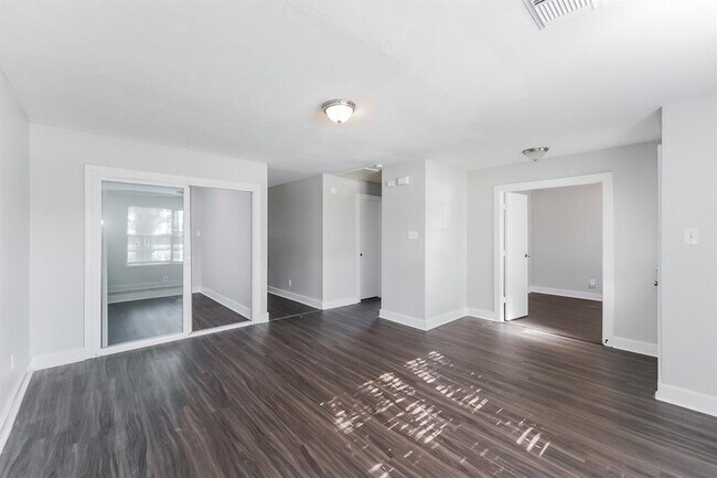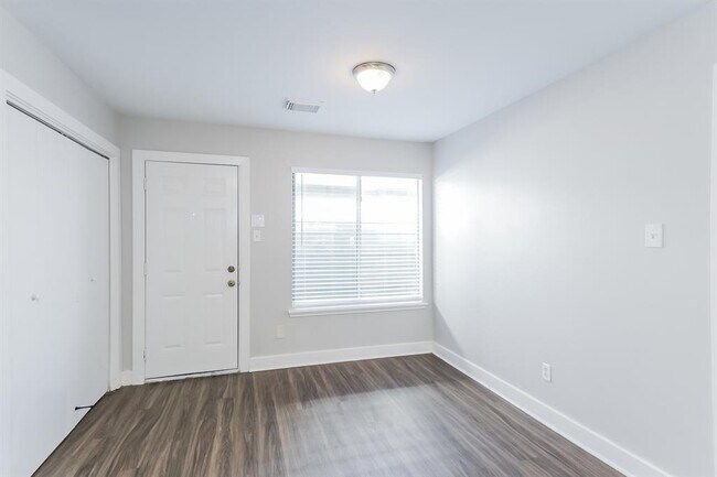 This Houston, TX rental home has a detached garage and a fenced-in yard space. The main suite features a spacious layout, with a roomy closet and an en-suite. It's a lovely private area just off of the dining room, which has gorgeous wood-look flooring and a storage closet. The kitchen is modern, with premium appliances, long countertops, and plenty of natural light. There are also large storage cabinets for your everyday items. The rental home has its own dedicated office, with an oversized window and a closet for storage. It's the perfect place to get some work done or slip away for quiet time.
