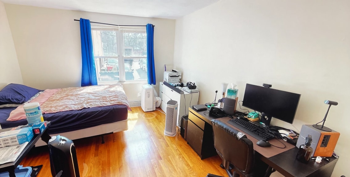 This unit ***INCLUDES ALL UTILITIES*** ( including central A/C) has hardwood floors and is a spacious 1 room studio ( about 12'x16') w/ large closet and brand new kitchenette ( new fridge , stove and cabinets ) and newly renovated bathroom. unit is located on raised first floor.