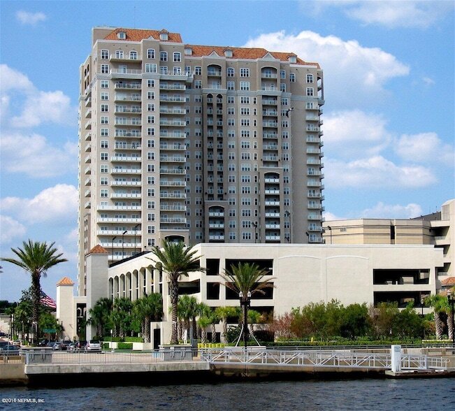 Offering a very large 1BR + Den with light hardwood floors and granite counters. Condo will be painted prior to your move-in. This condo has a Riverview of the St. Johns River & City Skyscape views! Included in the monthly rent is the water, sewer and internet usage as well. Amenities included 24/7 concierge service, fitness center w/state of the art equipment, saunas, steam rooms, squash court, tennis courts, pool, 21st floor club room, business center, meeting rooms, dog walk & Guest Suite! Marina w/boat slips available next door. Walk to sporting events, theatre, and restaurants. You will love calling this condo and magnificent building Home!