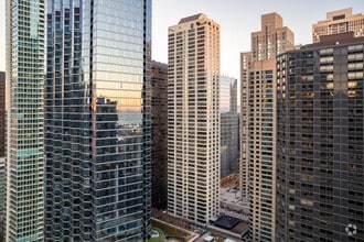 400 E Ohio Street, a striking 50-story high-rise in the heart of Streeterville, has been a prominent fixture of the Chicago skyline since its completion in 1982. This residential tower houses 181 condominium units, offering residents breathtaking views of Lake Michigan, Navy Pier, and the iconic Chicago cityscape. The building's modern glass facade reflects the surrounding urban landscape, while its prime location puts residents at the center of one of Chicago's most vibrant neighborhoods.