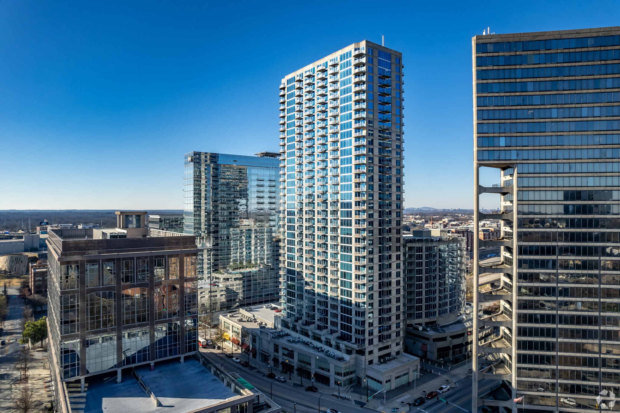 Nearby attractions and amenities include the World of Coke, Children’s Museum of Atlanta, the Chick-fil-A College Football of Fame, Woodruff Park, and the Georgia Aquarium. This happening part of town offers modern, upscale apartments with luxurious amenities and sweeping views of the city.