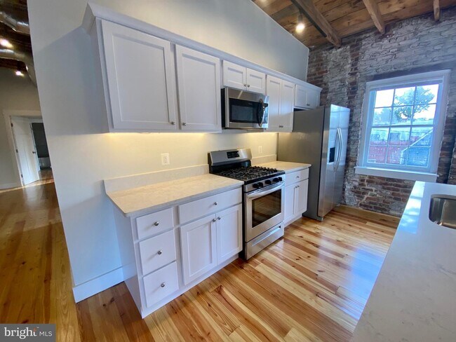 Live amongst the history of historic Downtown Fredericksburg in the Janney-Marshall Warehouse, newly re-imagined into a residential apartment building. This unit is new from top to bottom while preserving all the historic charm of exposed brick walls and post & beam construction. Located in the center of downtown Fredericksburg with shops, restaurants and the train station just steps away. This 3rd floor unit features high vaulted ceilings and a large open floor plan. The bright white kitchen boasts plenty of cabinet storage, gas range, and a large island with eat-in bar overlooking the family room. The exposed brick walls, wood posts, and exposed rafter ceilings add so much charm and character. The newer HVAC and plumbing duct work add a bit of an industrial flair. This unit features a spacious primary suite with 2 closets and large primary bathroom with large soaking tub/shower. From the original refinished floors to the preserved windows, you must come check out what Janney-Marshall has to offer for downtown living! The building also features an elevator. Water/Sewer/Trash are included in the rent.
