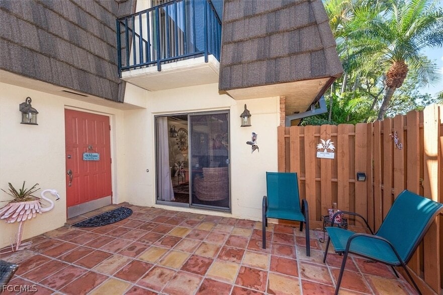 Light, bright, and beach-themed this cheery furnished 3-bedroom, 2.5-bath home is designed for Florida living in a friendly, safe community with a heated pool.Downstairs, enjoy a spacious open living area with two comfortable sofas, a wicker reading chair, and a smart TV. Large sliding glass doors bring in natural light and open to an oversized, completely fenced private courtyard for added privacy. The courtyard is set up for outdoor living with a table, large umbrella, and a grill perfect for relaxing or dining outside. The dining area flows into a fully stocked kitchen with everything you need for cooking at home, plus a dedicated workspace to handle emails, remote meetings, crafting or however you decide to use the space. You'll also find a convenient half bath and an oversized laundry room on the main level.Upstairs are three bedrooms and two full bathrooms, offering privacy and a comfortable setup. Please note: balconies are for decoration only and are not intended for use. Conveniently located close to shopping, dining, and everyday essentials approximately 22 minutes to Fort Myers Beach and 17 minutes to downtown.