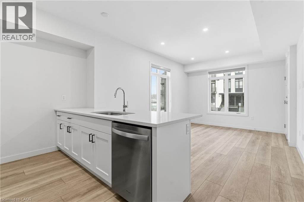 AVAILABLE NOW - This ground-floor,corner stackable townhome offers stair-free living,blending everyday convenience with refined contemporary style. Oversized windows flood the home with natural light,creating a bright and airy atmosphere throughout. The thoughtfully designed layout features a stylish kitchen with an open-concept living and dining area,two bedrooms,and two bathrooms. Step outside to your private balcony overlooking a peaceful trail—an ideal spot for added privacy and a quiet outdoor retreat. The one dedicated parking space,conveniently located directly across from the unit,makes coming and going effortless. Ideally situated in Cambridge’s rapidly growing south end,this home is close to established schools,shopping,and a highly anticipated community hub. Set to open in 2026,the Cambridge Recreation Complex will feature a 10-lane 25-metre swimming pool,a warm-water leisure pool,three FIBA-standard gymnasiums,an indoor walking and running track,fitness facilities,multi-purpose rooms,a concession area,and a new Cambridge Public Library branch,all surrounded by park amenities. The neighbourhood will also include a new collaborative public and Catholic elementary school with on-site childcare,forming a future joint-use campus designed to support educational,recreational,and cultural activities for all ages. An exceptional opportunity to lease a thoughtfully designed,ground-level home in a vibrant,growing community—where modern comfort meets everyday practicality. (id:52069) ID#: 2185171