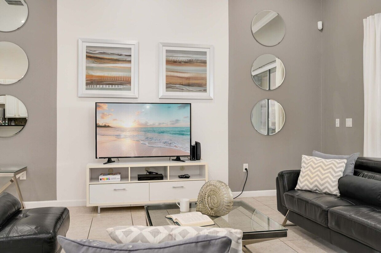 The advertised rate of $3,440/month is the lowest available price, based on a 30 day(s) stay with a move-in date of August 29, 2026. Rates vary depending on the duration of stay, season, and other parameters. For exact pricing and additional pricing components, please visit our website and enter your desired move-in and move-out dates. The rate is applicable when billed upfront; it can be higher if billed in multiple payments. Welcome to this relaxed home in Solterra Resort, designed for families and groups looking to spread out and settle in. This home offers space, comfort, and resort access for an easygoing stay near Orlando’s top attractions. Feel at home in this 5-bedroom, 4-bath retreat that sleeps up to 10 guests. Sunlight pours through the living space, complemented by central air conditioning. The spacious living area features comfortable seating and a flat-screen TV. The fully equipped kitchen includes a refrigerator, stove, oven, microwave, and dishwasher. Indoor and outdoor dining spaces are available. Enjoy access to a pool and outdoor furniture on the patio, balcony, and backyard. This home is pet-friendly and offers free parking on premises as well as free street parking. Guests have resort access to shared amenities including a resort-style pool with water slide, lazy river, poolside cafe, fitness center, playground, tennis and volleyball courts, and recreational areas. Situated in Davenport, this home offers convenient access to Orlando’s major attractions, with Disney, Universal Studios, and SeaWorld all within a short drive. Grocery stores, restaurants, and everyday essentials are easily reachable. Quiet hours are between 10 PM and 8 AM. Please take out the trash and dispose of it properly upon departure, as failure to do so could result in fines up to $300. Includes a dedicated workspace and Wi-Fi. [SI]