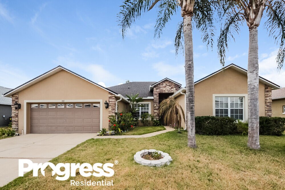 Please note, our homes are available on a first-come, first-serve basis and are not reserved until the lease is signed by all applicants and security deposits are collected. This home features Progress Smart Home - Progress Residential's smart home app, which allows you to control the home securely from any of your devices. Learn more at Want to tour on your own? Click the “Self Tour” button on this home’s listing or call to register for a self-guided showing at a time that works best for you. Stunning tropical landscaping surrounds this four-bedroom, three-bathroom Kissimmee rental home. Vinyl plank flooring adds a stylish touch to the living room. In the kitchen, a row of frosted white glass pendant lights illuminate the island. Dine in the kitchen's eating area, or take your meal to the covered porch in the fenced backyard. An overhead fan distributes a calming breeze throughout the master bedroom. In the luxurious en -suite bathroom, a large tiled garden tub awaits you in the evening. Each morning, prepare for a new day at the dual-sink vanity or in the walk-in shower. Schedule an in-person tour of this rental home today.