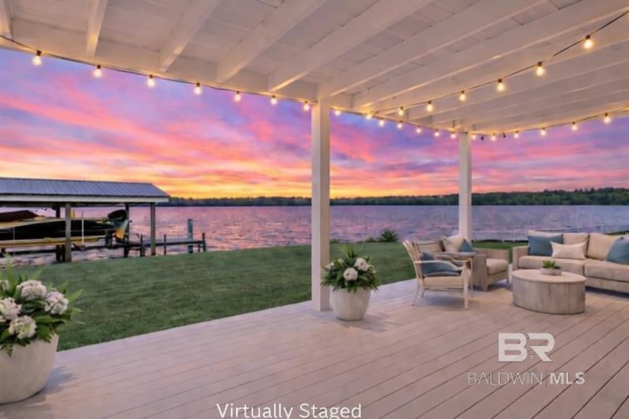 Discover the Ultimate in Island Luxury Living! Located in the gated waterfront community of Tensaw Island,this stunning property captures breathtaking water views from nearly every window. The front of the home showcases magnificent sunsets over the Tensaw River,while the back overlooks serene sunrises across Hurricane Bayou. Enjoy peaceful mornings on the screened porch or evenings by the water just steps from your private dock with boat lift. Inside,the kitchen has been completely updated with stainless-steel appliances,modern finishes,and an open flow to the spacious living area featuring a cozy fireplace and panoramic views. Upstairs includes new luxury vinyl plank flooring,and sellers are providing new flooring and install allowance for the downstairs,ready for your personal touch. The main level offers the updated kitchen with island seating,a dining area,hobby or study space,and a convenient half bath/laundry combo. The primary suite includes a charming sitting nook with beautiful views,large closets,and a full bath. Upstairs provides two more bedrooms and a versatile 10x13 flex space ideal for guests or an office. Step outside and experience true river living; drop your nets for crabs right off your dock,launch your boat to explore open water,or unwind as the sun melts into the horizon. The community includes sewer,garbage service,gated entry,bridge access,and a nearby boat ramp on the island for added convenience. Just minutes by boat from Gravine Island,this property blends the tranquility of island life with the comfort of gated living,creating one of Baldwin County's most captivating waterfront opportunities! Pet Deposit is negotiable.