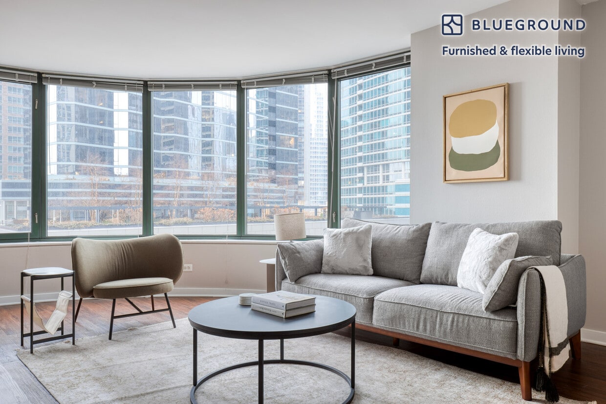 Feel at home wherever you choose to live with Blueground. You’ll love this beautiful Streeterville furnished two bedroom apartment with its modern decor, fully equipped kitchen, and bright living room with great views. Ideally located, you’re close to all the best that Chicago has to offer! (ID #CHI909) The advertised rate of $4,260/month is the lowest available price, based on a 12 month(s) stay with a move-in date of May 21, 2026. Rates vary depending on the duration of stay, season, and other parameters. For exact pricing and additional pricing components, please visit our website and enter your desired move-in and move-out dates. The rate is applicable when billed upfront; it can be higher if billed in multiple payments. Brokers are welcome to reach out. Were you looking for an unfurnished lease? Try Blueground instead and upgrade from unfurnished to furnished living: - Furnished at rates comparable to unfurnished - No setup or furniture costs - save thousands - Move-in ready - save time, just bring your suitcase Designed with you in mind Thoughtfully designed with bespoke finishes, modern furnishings, and a fully equipped kitchen, you’ll enjoy that “I’m home” feeling with this Blueground apartment. Whether you’re lounging in your bright living room streaming the latest and greatest entertainment on the smart TV or premium wireless speaker, or getting some well-earned rest on the superior quality mattress with fully stocked linens, you’ll fall in love with everything this Streeterville apartment has to offer. This apartment also offers in-apartment laundry. Sleeping arrangements King Bed, 70.8in/180cm Queen Bed, 63in/160cm Amenities Building amenities unique to this two bedroom apartment include an on-site: - BBQ Area - Doorman - Dryer - Elevator - Swimming pool - Washing machine - Lounge - Parking - Pets allowed Arrival and ongoing support The entire apartment is yours to enjoy! Throughout your stay, you’ll have access to our Client Experience team through the Blueground App. You can schedule additional cleanings, submit maintenance requests, and view our neighborhood recommendations with just a few taps. We’ll share all details upon confirmation of your stay. Ideally Located This furnished rental is located in Streeterville, only a 5 minute walk from The Loop. One of the fastest-developing neighborhoods in Chicago, Streeterville extends out into Lake Michigan and attracts a blend of young professionals, students, and tourists. A plethora of amenities and activities exist for every lifestyle. From Navy Pier activities to luxury shopping on Michigan Avenue, it is a walkable community with easy access to entertainment. Other things to note Building amenities may have an extra cost. This Blueground apartment has flexible lease options, allowing you to book it for one month, a year, or more. Pets are welcome, though weight limits and breed restrictions apply and may incur fees. Parking is offered based on availability and is subject to a fee. We take great pride in ensuring every photo displayed is shot in our own units with our actual furnishings. That said, we regularly refresh our decor and furniture arrangement, which may differ from what’s pictured. Also note - This apartment's central location means it can be noisy at times - The heating system operating schedule is controlled by the building management - The cooling system operating schedule is controlled by the building management [SI]