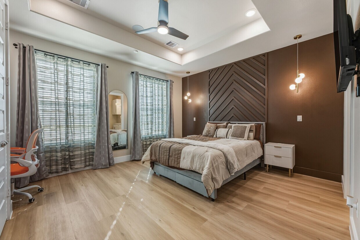 ALL Bills PAID + Fully Furnished Luxury Studio,ONLY 4.5 Miles to Med Center!***Step into this NEW 2025 built,tastefully decorated luxury studio that feels like a one-bedroom—fully furnished and ALL bills paid (gas,water,electricity)! Enjoy a sleek and spacious kitchenette with quartz countertops,42” white cabinets,under-cabinet lighting,dual electric cooktop,sink,full-size dishwasher,microwave,and refrigerator + a stackable washer/dryer for true convenience. The bedroom space features a queen-bed with color-changing LED lights,Bluetooth ceiling speakers,TV,a study-area,and a separate sitting space for two. Luxury vinyl floors,blackout + sheer curtains,and a cozy en-suite bathroom with separate Dual Rain-Showers and Dual Shampoo-Niches. It's near the 610-Loop & 288,just 4.5 miles to the Medical Center and under 20 minutes to Downtown,Stadiums,Malls,Universities,Zoo,Museums,and the Theater District. Make this furnished,ALL-Bills-PAID luxury studio yours today! MLS# 28338827