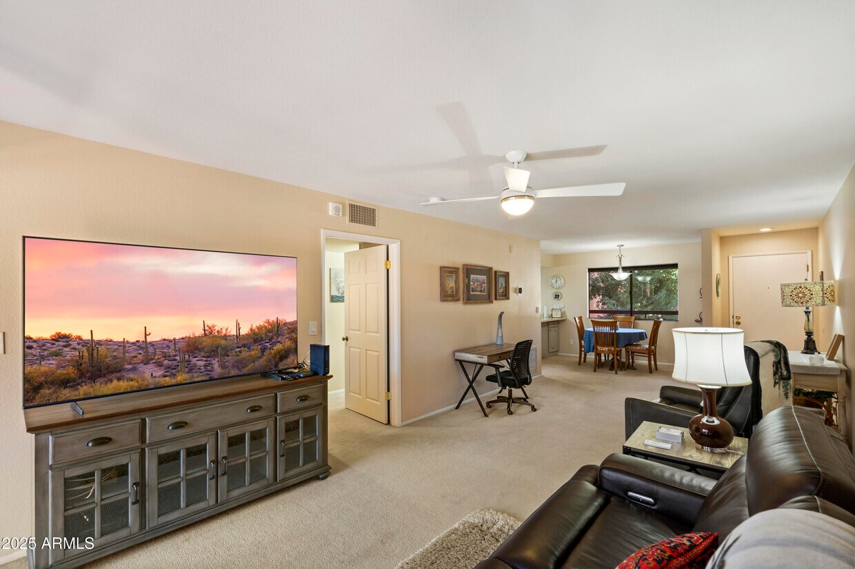 Beautifully furnished 1B/1B condo in the gated Anasazi Village! This open and spacious floor plan includes a large living area with desk,updated kitchen,full-size washer/dryer,and a private balcony overlooking the lush cactus garden,golf course,and pool. Primary suite offers a king bed,tv,patio access & step-in shower. All utilities includedjust bring your suitcase! Enjoy resort-style living in this quiet community with 5 pools,spas,2 fitness centers,clubhouse with media & billiards rooms,and walking paths throughout the beautiful grounds. Perfect vacation rental or lock-and-leave home with unbeatable access to Stonecreek Golf Course and PV- new urban district with premium dining,offices,green space,and upscale retail and specialty groceries,plus quick to highways.