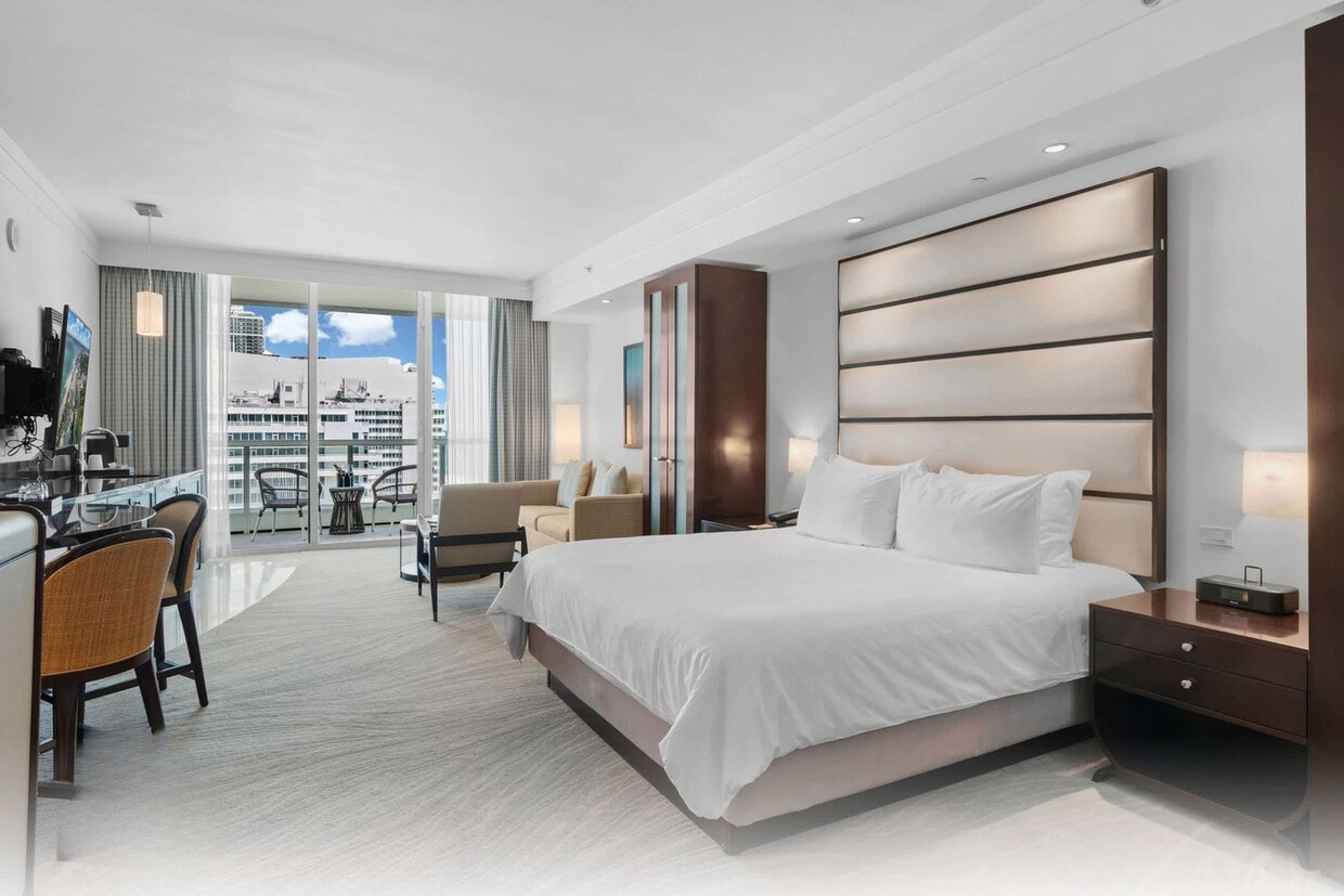 The advertised rate of $6,067/month is the lowest available price, based on a 30 day(s) stay with a move-in date of May 12, 2026. Rates vary depending on the duration of stay, season, and other parameters. For exact pricing and additional pricing components, please visit our website and enter your desired move-in and move-out dates. The rate is applicable when billed upfront; it can be higher if billed in multiple payments. Feel at home in this bright 1-bedroom apartment in the heart of Miami Beach, set within one of the city’s most iconic resorts. This spacious apartment offers sweeping ocean views from its private balcony. Blending comfort and style, this apartment features a plush king-size bed with fresh linens and a comfortable queen-size sofa bed. A well-equipped kitchenette provides everything you need for light meals and snacks, including a mini fridge, microwave, Keurig coffee machine, and basic utensils. For added convenience, enjoy fast Wi-Fi, a large smart TV, air conditioning, and a full bathroom with a walk-in shower. Paid valet parking is available on site. Miami Beach is world-famous for its golden sands and turquoise waters. Step outside to enjoy sunbathing, swimming, or watersports, or take a leisurely stroll along the scenic Miami Beach Boardwalk. Nearby parks such as Collins Park and South Pointe Park offer green spaces for picnics and relaxation. From luxury boutiques to trendy shops, the area has something for every style. Explore Lincoln Road Mall for high-street favorites and unique finds, or visit Bal Harbour Shops for world-class designer brands. Miami Beach is a culinary hotspot, offering everything from oceanside cafés to Michelin-starred dining. Just minutes away, the Art Deco Historic District showcases Miami’s signature pastel-colored architecture. Miami International Airport is about a 20-minute drive away, while Fort Lauderdale-Hollywood International Airport can be reached in approximately 40 minutes. Quiet hours are between 10 PM and 8 AM. [SI]