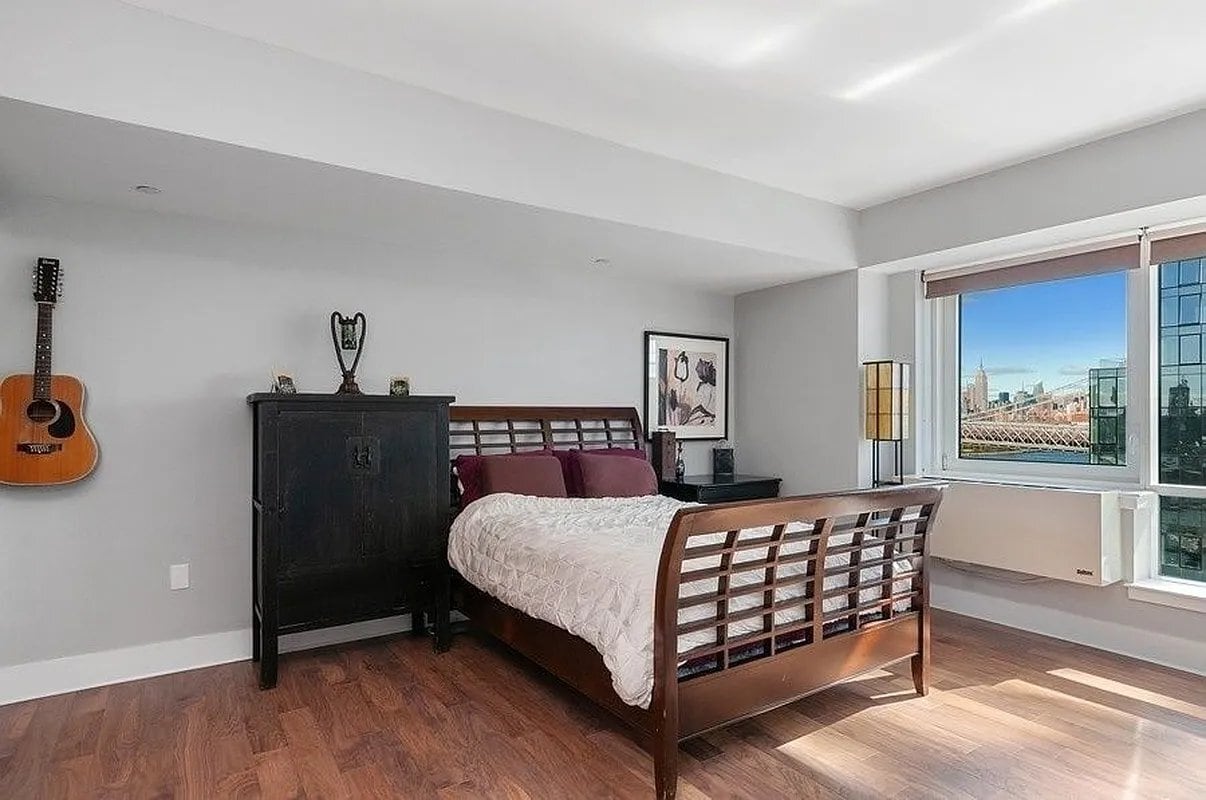 A stunning Apartment with a washer dryer, spacious floor plan and beautiful skyline and river views.Enjoy close to 1,200 square feet of desirable living space right on the water. The chef's kitchen offers a large cooking island, stainless steel appliances, granite countertops with a counter breakfast bar and custom cabinetry.The apartment features a walk-in closet and an en-suite marble master bathroom with double vanities, a luxurious and deep soaking tub, and a separate glass-stall shower. This home is completed by floor to ceiling windows that overlook the river and bridge, wall AC/heating units, hardwood floors and high ceilings.Schaefer Landing North includes an array of amenities such as a brand new lobby, 24 hour concierge, state of the art fitness center, residents lounge, library and business center, private courtyard, landscaped roof deck and esplanade, parking garage that include multiple zipcars and bike storage.