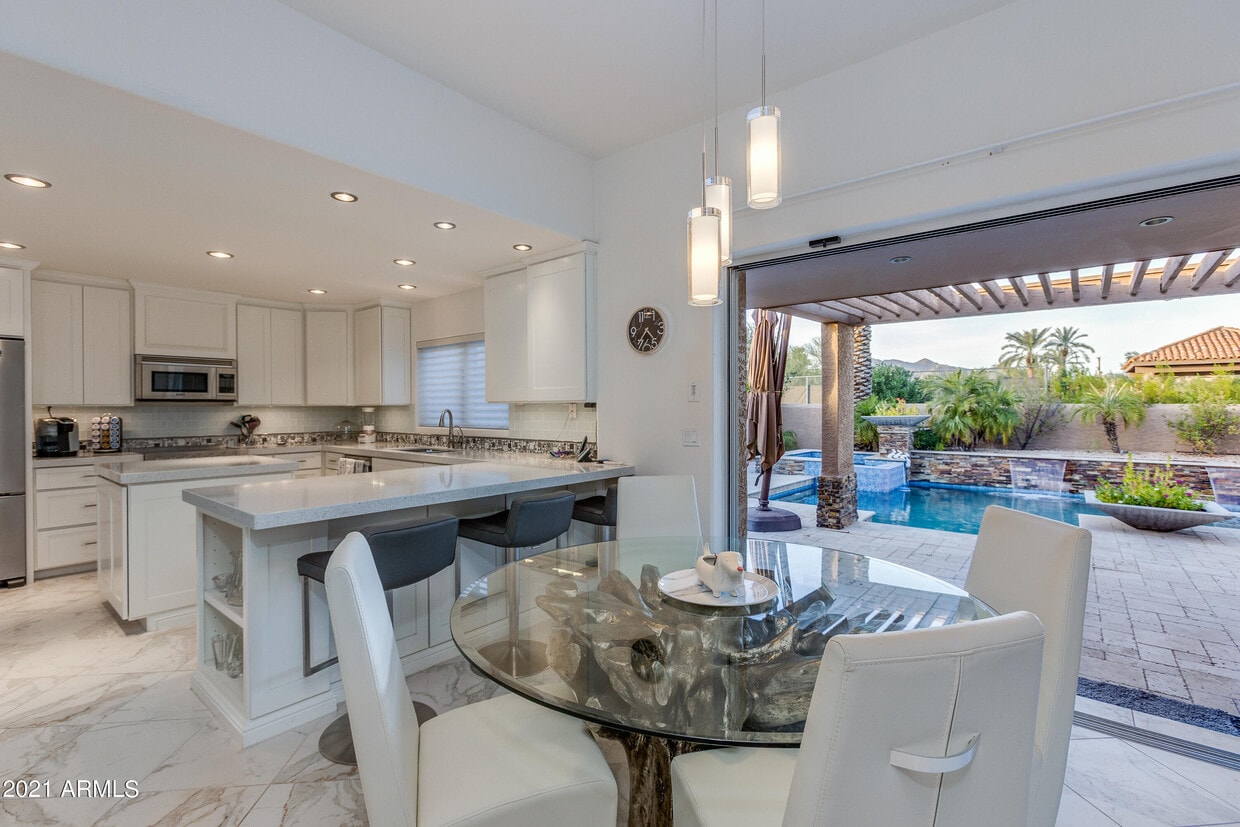 Welcome to luxury living located within the guard gated community of The Village at Camelback Mountain. Updated single-level patio homes of this caliber rarely reach the market in this highly desirable community. Designed for entertainment and to maximize indoor/outdoor living this home has been completely updated throughout. The kitchen and family room feature a Fleetwood sliding glass wall that opens to a resort-style backyard. Take in the sweeping views of Camelback Mountain while you relax in the heated pool and spa. The kitchen boasts quartz counters and Viking appliances. Enjoy two owner's suites with spacious bathrooms and walk-in closets. The living room is ideal for entertaining and offers a wood burning fireplace as the center piece, a gorgeous wet bar, and access to