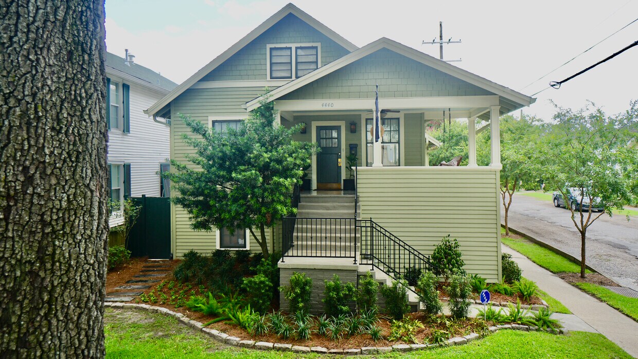 This Arts & Crafts home is situated on an oak lined divided stretch of Bienville Avenue near City Park. Nestled in a close knit neighborhood with plenty of foot traffic and within 4 blocks of restaurants, bars, coffee, grocery, drug stores, and other shopping including Mid-City Market. I-10 is a 3-minute drive. Enjoy daily baked pastries and premium coffee at The Station just 5 doors down. The house includes a raised porch overlooking the corner of Bienville Avenue and North Murat Street. Enter the front door into a formal living room and dining room. Turn left off the dining room into a hallway leading to two bedrooms and a full bathroom. Past the dining room is the kitchen and separate casual living room and exercise space. From this living room are the stairs leading to a large bedroom with full bathroom and study. New kitchen with granite, stainless steel appliances, pot filler, and over & under cabinet lighting. Original wood floors, triple crown molding, updated electrical, light dimmers & soft touch switches, lushly landscaped corner lot, covered porch with swing, and central A/C & heat. Bedroom 1 has a queen bed, closet, and large armoire. We used this bedroom as a master because we wanted to be closer to our small children, but the upstairs bedroom is more private and could also be the master. Bedroom 2 has a double bed, large closet, and armoire. Suitable for anyone, but we used this as a child's room as it's the smallest of the three. Bedroom 3 has a queen bed, closet, and ample built-in drawers and cabinets. This bedroom has its own bathroom and is connected to the study. The downstairs bathroom is larger than the upstairs and has granite countertops and shower jacuzzi tub. The upstairs bathroom has a shower. The garage has a manually operated door and could be used to store a vehicle or boat, but it's not really practical for daily use. Street parking is easy. Nest Thermostat Linens Provided Washer & Dryer High Speed Wi-Fi Towels Provided Steps, yoga mat, and stability ball. Iron & Board Hair Dryer Kitchen - Gas Range, Refrigerator, Dishwasher, Disposal, Microwave, Coffee Maker, Washer & Dryer Round Dining Table with 6 Chairs Samsung Smart TV connected to the internet - Netflix, Amazon, Hulu, YouTube, etc. The TV is also connected to a High Definition Antenna. $150 Cleaning Fee $25 monthly pet fee $3,000 Deposit $3,000 per month. 30-day minimum Owners live nearby for any assistance