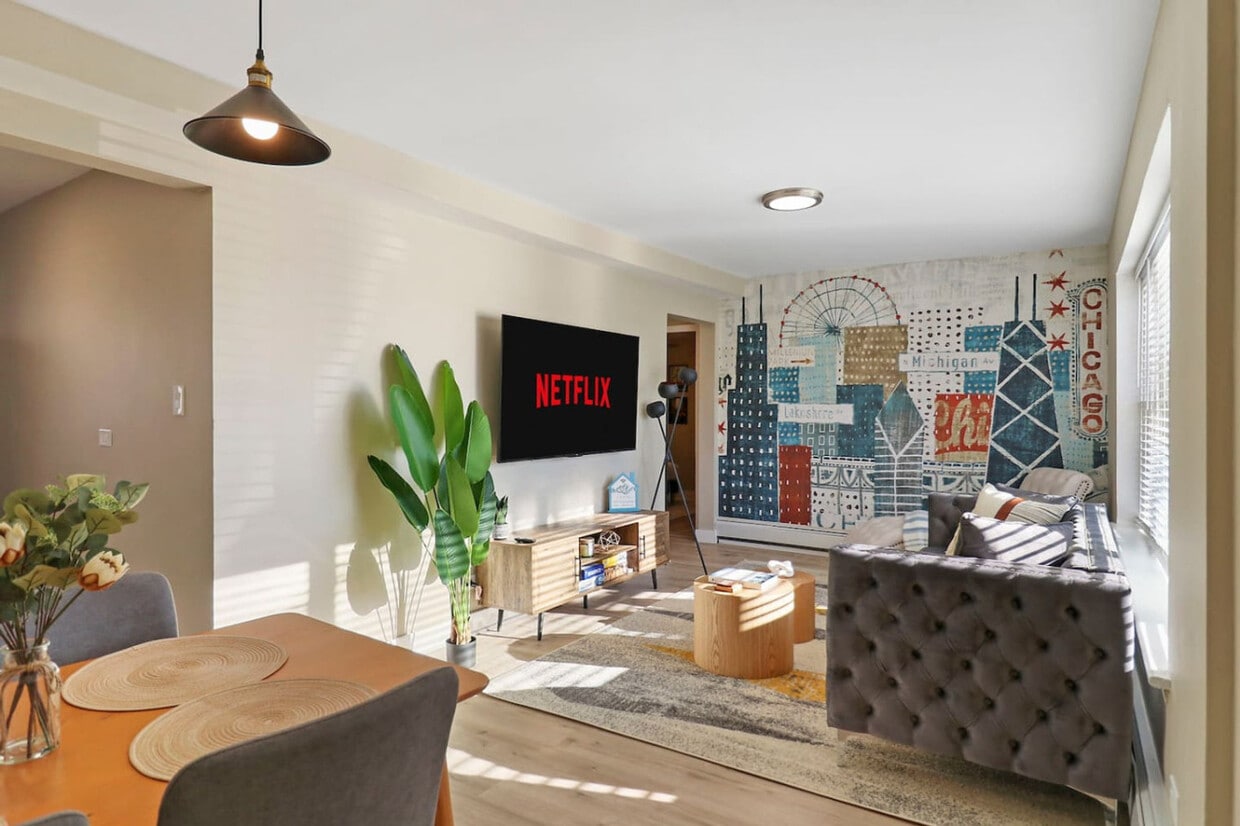 The advertised rate of $3,327/month is the lowest available price, based on a 1 month(s) stay with a move-in date of April 7, 2026. Rates vary depending on the duration of stay, season, and other parameters. For exact pricing and additional pricing components, please visit our website and enter your desired move-in and move-out dates. The rate is applicable when billed upfront; it can be higher if billed in multiple payments. Feel at home in this stylish 2-bedroom condo, thoughtfully designed to provide an authentic Windy City experience. The apartment is located just 20 minutes from downtown Chicago and 15 minutes from Midway Airport. This condo is perfectly suited for business travelers or a group trip and features a fully stocked kitchen, a Keurig coffee maker, and several board games for your enjoyment. Other notable amenities include attached laundry facilities, fully stocked bathrooms, noise machines, a hair dryer, and an iron with board. The stylish living room includes a smart TV, a comfortable couch and chaise to unwind, and several curated board games for your entertainment. Free reserved parking is available for one car on the premises, and additional parking can be accommodated. Free laundry credits are provided for guests to use the laundry machines. Nestled in Stickney, IL, enjoy the best of both worlds with close proximity to downtown Chicago (20-minute drive) and the convenience of Midway Airport (15-minute drive). You'll also have easy access to public transportation, as the apartment is 7 minutes from Harlem Metra station and a few blocks from the CTA bus stop, providing a short ride to downtown Chicago. Numerous grocery stores, cafes, restaurants, and city attractions are within a short drive. Please respect the neighbors by keeping noise to a reasonable level. Strictly no partying is allowed at any time, which is strictly monitored and will result in a $500 fine and immediate removal. No community disturbances are allowed at any time, which is subject to immediate removal. Strictly no smoking is allowed in or directly outside the unit, which will result in a $500 fine. Please take care of the furniture and items in the unit, as there is a strict damage policy for furniture items, by item. Check-in time is 4:00 pm, and checkout time is 11:00 am. Includes a dedicated workspace with high-speed Wi-Fi. [SI]