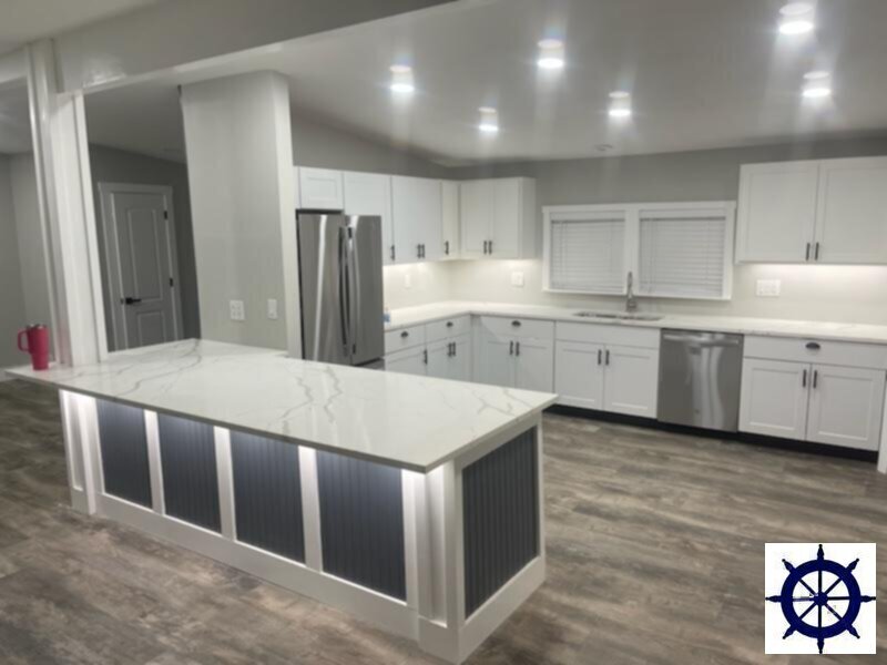 Waterfront! Fully remodeled with lots of custom upgrades! Two docks, bonus room, extra storage room, garage, fireplace, stainless steel appliances, stone counter-tops, and more.