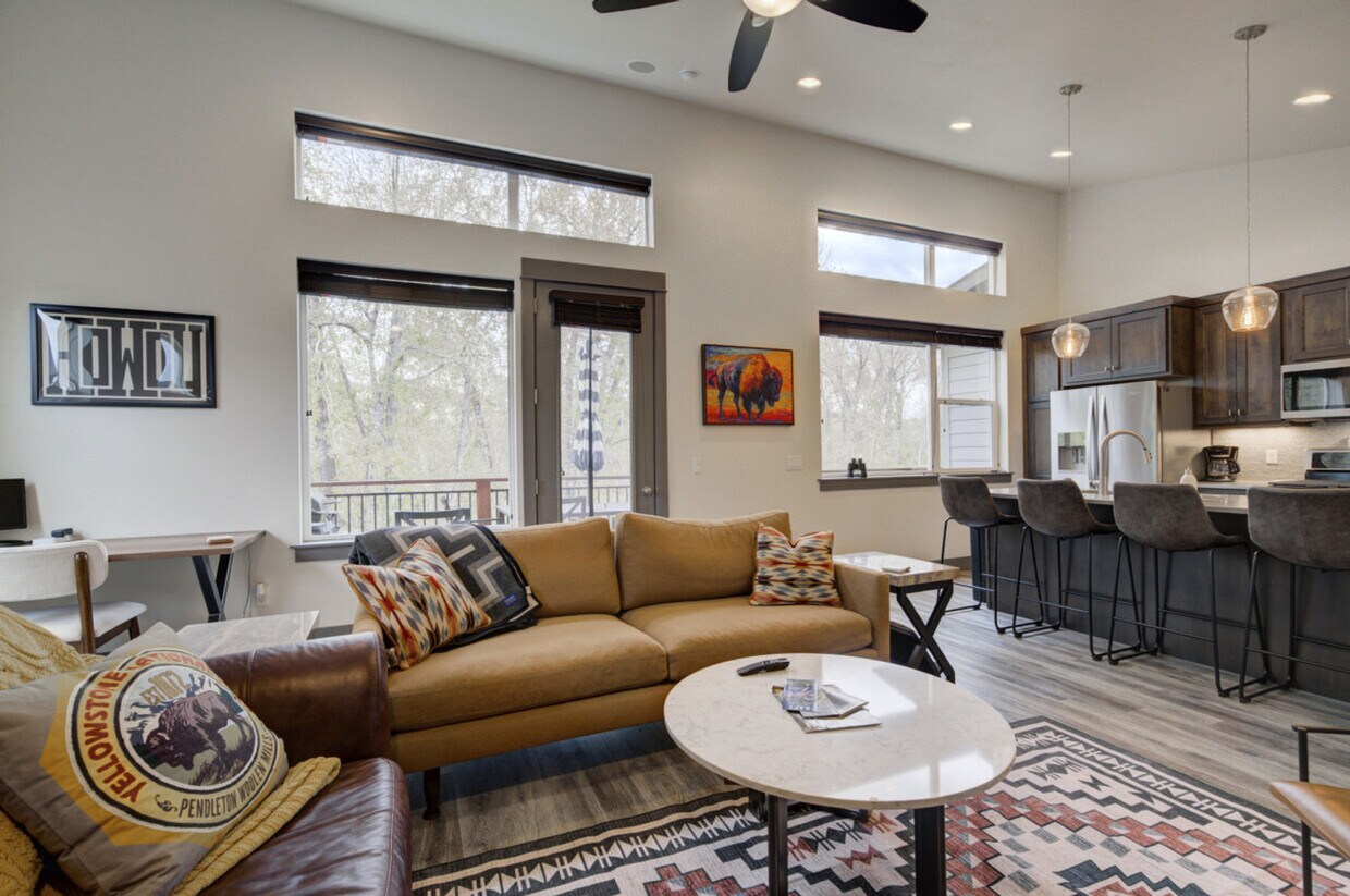 The advertised rate of $5,472/month is the lowest available price, based on a 30 day(s) stay with a move-in date of March 19, 2026. Rates vary depending on the duration of stay, season, and other parameters. For exact pricing and additional pricing components, please visit our website and enter your desired move-in and move-out dates. The rate is applicable when billed upfront; it can be higher if billed in multiple payments. Nestled in the Railway Cottages development, this charming home is your ideal basecamp for Treasure State adventures. It backs onto a forested area with a trail to the Gallatin River, offering wildlife viewing opportunities with binoculars included and close proximity to Bozeman's attractions. Inside, enjoy ample space, natural light, and an open-concept design, fully stocked for your convenience and comfort during your Southwest Montana escape. The home features a patio with a BBQ, a garage, a full kitchen, and is located in a quiet area. Experience comfort in this spacious 2-bedroom, 1-bathroom home that comfortably sleeps 6 but can accommodate up to 8 guests. The condo spans 1064 square feet, excluding the two-car garage. The primary bedroom features a California king bed with a Nectar mattress and a 55” TV. The second bedroom offers queen-over-queen bunk beds and an adjustable-height standing desk. The living area includes a 65” LG TV, a cozy sofa that can double as sleeping space, a dedicated workspace, and Spectrum high-speed internet. The kitchen is fully equipped with stainless steel appliances, a crockpot, an ice maker, an eat-in kitchen, and filtered water in the fridge. Additional amenities include a full washer and dryer, a steamer, and an iron. There is parking in the driveway for 1 car and room for another car in the garage, although the owner’s car is also parked in the garage. Located in the Railway Cottages development, this home offers a quiet and serene environment with convenient access to leisurely walks. Within a quick 5-minute drive lies "Four Corners", a quirky hub boasting a range of businesses including bars, a Mexican restaurant, a cowboy cafe, a breakfast place, an espresso stand, a pizza place, a small supermarket, and a fly-fishing shop. Located about 15 minutes from Bozeman's lively Main Street, this home serves as an excellent starting point for exploring downtown Bozeman, Big Sky, and Yellowstone National Park. It's 8 miles to downtown Bozeman, 10 miles to the airport, 25 miles to Bridger Bowl, 35 miles to Livingston, 45 miles to Big Sky, and 85 miles to Yellowstone National Park. Bozeman is known as “the most livable place” for good reason, offering world-renowned fly fishing, stunning mountains for outdoor activities, and a vibrant arts and culture scene. The building is a duplex, accommodating other tenants on the opposite side, while this unit ensures complete privacy. Guests will have access to the entire property and can easily check-in via a keycode. Quiet hours are between 10 pm and 8 am to ensure a peaceful environment for all. No parties and no smoking are allowed on the premises. [SI]