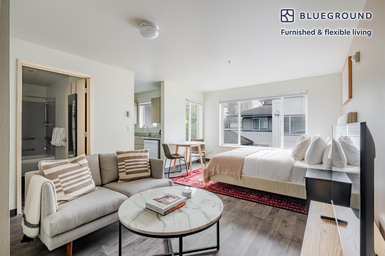 Discover the best of Seattle, with this studio apartment in University District. It’ll be easy to simply show up and start living in this furnished apartment with its fully equipped kitchen, living room, and our dedicated, on-the-ground support. (ID #SEA862) The advertised rate of $1,850/month is the lowest available price, based on a 6 month(s) and 5 day(s) stay with a move-in date of April 2, 2026. If you’re looking for a 1-year stay, the rate is $1,940/month. Rates vary depending on the duration of stay, season, and other parameters. For exact pricing and additional pricing components, please visit our website and enter your desired move-in and move-out dates. The rate is applicable when billed upfront; it can be higher if billed in multiple payments. Brokers are welcome to reach out. Were you looking for an unfurnished lease? Try Blueground instead and upgrade from unfurnished to furnished living: - Furnished at rates comparable to unfurnished - No setup or furniture costs - save thousands - Move-in ready - save time, just bring your suitcase Designed with you in mind Gorgeous furniture, fully equipped kitchen, smart TV, and a premium wireless speaker are just a few of the amenities you’ll find inside this studio apartment. Ideally located in Seattle, you’ll find a lot to love outside as well. When you’re ready to relax, you’ll be happy to discover every Blueground bedroom comes with superior quality mattresses, fully stocked linens, and cozy towels. We handle everything so you can simply show up and start living. Sleeping arrangements Queen Bed, 63in/160cm Amenities Building amenities unique to this studio apartment include an on-site: - Dryer in building - Elevator - Washing machine in building - Parking - Pets allowed Arrival and ongoing support The entire apartment is yours to enjoy! Throughout your stay, you’ll have access to our Client Experience team through the Blueground App. You can schedule additional cleanings, submit maintenance requests, and view our neighborhood recommendations with just a few taps. We’ll share all details upon confirmation of your stay. Ideally Located This furnished apartment is located in the University District (the U District), a relaxed area with casual hangouts. The University of Washington is located here and the large, leafy campus includes an art gallery and the Burke Museum of Natural History and Culture. The Husky Stadium draws in the city’s lovers of college football. The neighborhood’s main thoroughfare is University Way, better known as The Ave. All sorts of shops, cafes, and restaurants line the street, catering to students and young professionals. To access the rest of the city, simply hop on Seattle Metro Route 49. Other things to note Building amenities may have an extra cost. This Blueground apartment has flexible lease options, allowing you to book it for one month, a year, or more. Pets are welcome, though weight limits and breed restrictions apply and may incur fees. Parking is offered based on availability and is subject to a fee. We take great pride in ensuring every photo displayed is shot in our own units with our actual furnishings. That said, we regularly refresh our decor and furniture arrangement, which may differ from what’s pictured. [SI]