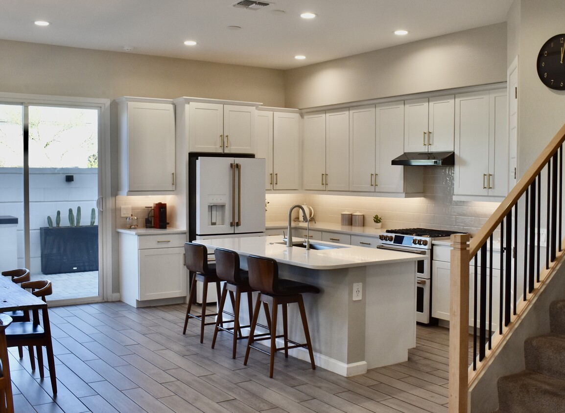AVAILABLE APRIL 2026. MID AND LONG TERM AVAILABLE. Experience elevated living in this newly built, beautifully furnished smart home in the prestigious Arabella gated community of North Scottsdale. With nearly 2,400 sq ft, this two-story home features 4 bedrooms, 3 baths, a movie room, and a playroom, comfortably accommodating up to eight guests. Perfect for medical travelers, relocating families, or corporate professionals needing extended monthly stays. The versatile fourth room is set up as a dedicated home office featuring a large designer desk, ideal for remote work or medical professionals on assignment. A comfortable sofa bed provides flexible sleeping accommodations for guests or extended stays. The open-concept main floor features hardwood floors and a stylish living area with a sectional and smart TV in every room for easy relaxation. The adjoining dining area seats six and flows seamlessly into a gourmet kitchen with Cafe LG appliances, gas range, and full-size fridge with LED wall. Premium Water experience: the home features a whole-house water softener for a spa-like, nohard water experience in all showers and fixtures. The kitchen is equipped with a 9-stage RO + UV alkaline water filtration system, with the refrigerator filter connected to the same system, delivering exceptionally clean, crisp, great-tasting drinking water throughout. Upstairs, the primary suite features a king bed, walk-in closet, and spa-style bath with double sinks, walk-in shower, and private toilet room. Three additional guest bedrooms are fully furnished, while the playroom includes a large couch that converts into a bed for flexible sleeping. The second full bath has a double sink and bathtub, the third bath is a stylish powder room with elegant fixtures and a dedicated workspace round out the list of perks Outdoors, a private oasis awaits: built-in gas BBQ, turf and paver seating area, and pool, perfect for entertaining or unwinding. Tenants also enjoy access to the Arabella gated community amenities, including a resort-style pool, lap pool, jacuzzi, playgrounds, and walking/biking paths. Additional perks include full laundry downstairs, 2-car garage, under-stairs storage, high-speed internet, and pet-friendly approval. Ideally located just minutes from Scottsdale Quarter, Kierland Commons, Desert Ridge, and TPC Scottsdale, this home places you at the center of North Scottsdale living. Perfect for guests visiting for premier events such as Barrett-Jackson, TPC tournaments, or the Arabian Horse Show, as well as traveling professionals working at leading medical centers including Mayo Clinic and HonorHealth. Thoughtfully designed and fully furnished, this residence offers a seamless blend of comfort, style, and modern luxury for extended stays. All stays include fully furnished accommodations and high-speed Wi-Fi. Tenant pay for utilities. Flexible terms are available, so please feel free to reach out to discuss your specific needs. If you are interested in a mid- or long-term stay, I'd be happy to connect and explore the best options for you. Why Book With Us: We care about your stay, and it shows in every detail. This home is thoughtfully designed, beautifully furnished, and meticulously maintained to the highest standards for comfort and style. From booking to checkout, you'll enjoy a smooth, stress-free experience with responsive, friendly support every step of the way. This property is professionally cleaned and quality-checked to deliver a spotless, hotel-level experience with a personal touch. If you need anything during your stay, our local team is nearby and ready to assist.