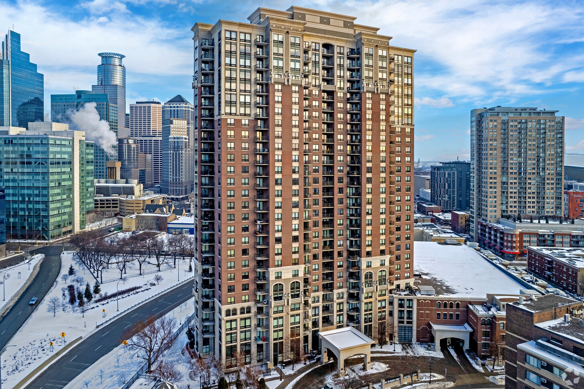 Driving through Downtown, you might be surprised at the lack of people on the streets, but don't be fooled -- the buildings link together by a unique system of skyways that enable residents to walk comfortably, even during the legendary Minneapolis winters. During the warmer months, residents of Downtown enjoy living within walking distance of entertainment centers such as Target Field and the Nicollet Mall. Bordered by the historic Mill District, Downtown East, North Loop and the Mississippi River, the neighborhood offers quick access to the city's most lively neighborhoods.