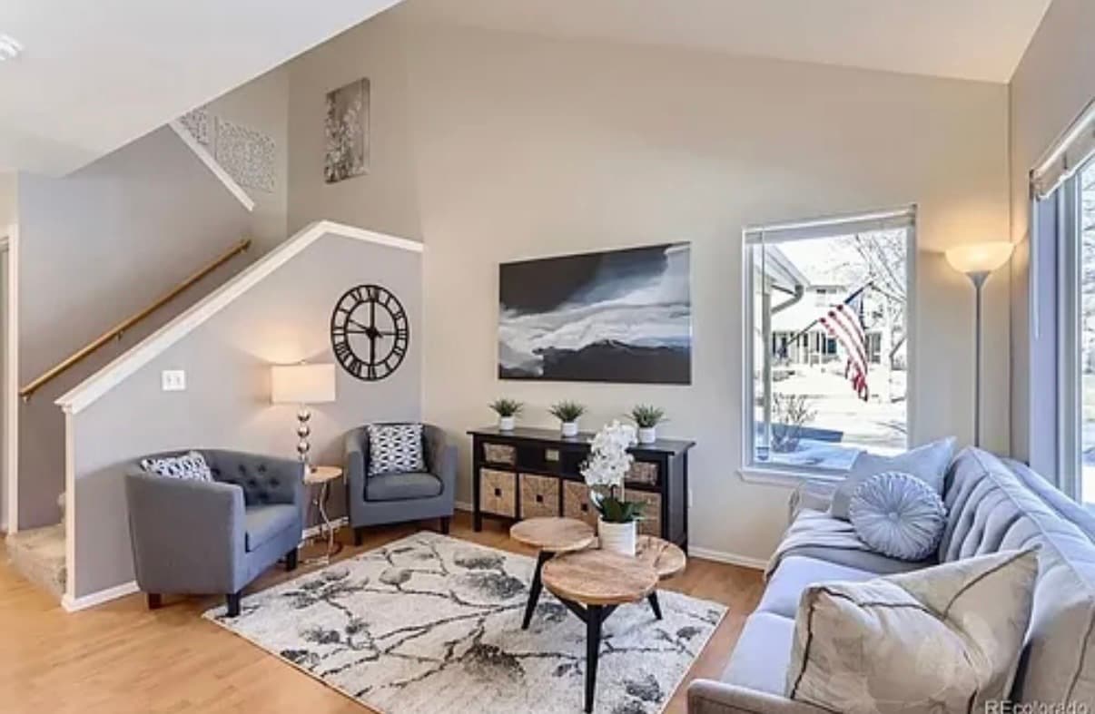 Available May 1st. Sought after two-car attached garage, vaulted ceiling townhouse. Recently remodeled white quartz kitchen new carpet, paint, and updated bathroom. This is a clean, friendly, and small community just a few blocks from the popular Main Street of Longmont, with its own private, HOA maintained park! central A/C and heating, water is included.