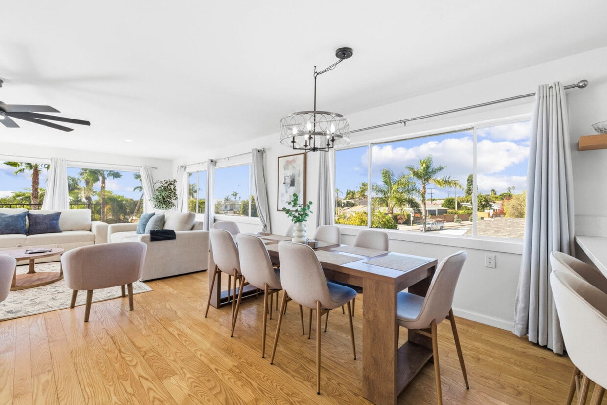 Welcome to your hillside escape in Pacific Beach! Feel at home in this stylish 2-bedroom, 2-bath home designed for comfort, relaxation, and unforgettable San Diego sunsets. This home features a spacious living room with floor-to-ceiling glass windows, a cozy fireplace, and a large Smart TV with all your favorite streaming apps. The kitchen is fully stocked with an island and built-in appliances. Brand new furnishings are featured throughout. Parking is available in the 2-car garage and extra driveway parking. Well-behaved pets are welcome with a fee of $100 per pet per stay. For monthly guests, there is a Utility Cap of $350; guests will be responsible for any overages. Walk to Turquoise Street cafés and restaurants. Enjoy a quick drive to La Jolla, Bird Rock, Mission Bay, and Wind & Sea Beach, with easy access to all the best of San Diego. Enjoy large private patios and a balcony with panoramic ocean and bay views, complete with 2 fun hanging egg chairs. You must be at least 26 years old to book this property. Shoes must be removed upon entry. Quiet hours are from 10 p.m. to 9 a.m. Parties are not allowed, and 3rd party bookings are subject to a $500 fee. Undeclared guests will be charged $100 per person if not disclosed. Smoking indoors will incur a $200 charge. Unplugging, tampering with, or covering any Wi-Fi, outdoor security cams, or locks is prohibited, and fees will apply. Unlawful use of our home (illegal activities or substances, etc.) is prohibited. Please use coasters under all glasses, cups, or mugs to prevent water rings and stains, and use trivet mats for hot pots to prevent heat damage to surfaces. Children should be supervised on stairs and always use handrails. Do not put metal, plastic, egg shells, grease, potato peels, bones, coffee grounds, pasta, or celery in the garbage disposal. Please keep pets off the beds, comforters, and sofas to avoid extra cleaning or replacement fees if bedding, towels, carpets, or furniture are stained, chewed, or covered in heavy fur. All pets must be declared, and undeclared pets (including ESAs) will incur a $200 fee per pet. Please do not disturb the back house guests. This property is equipped with a device that monitors the environment inside the property (including noise levels, temperature, and motion) to ensure guests have a pleasant stay and our neighbors are not disturbed. Includes a dedicated work desk and blazing-fast Wi-Fi for entertainment and remote productivity. This home does not have central a/c, but plenty of fans are provided, and the ocean breeze!. Registration Number: STR-12891L [SI]