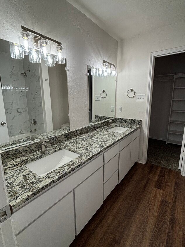 Two bed two bath nicely updated half duplex. This unit offers nice waterproof flooring, new carpet, updated bathrooms and granite countertops. It is in a perfect location in Arlington near the entertainment district and also has a 2 car garage