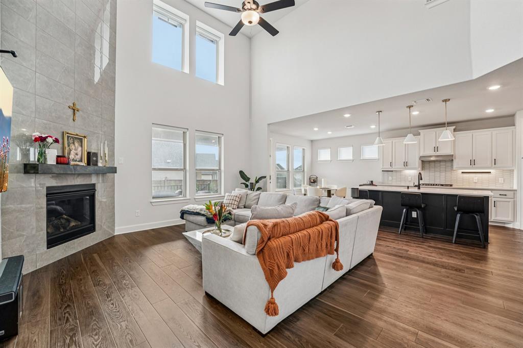 Gorgeous two-story home spanning 3,029 sqft and situated on an over sized corner lot in the 6 Creeks community. Incredible floor plan featuring two bedrooms on the main level plus multiple living and dining spaces. Open concept main living with soaring ceiling and floor to ceiling tiled fireplace focal point. Chef-inspired kitchen with quartz counter tops, under-cabinet lighting, 5-burner gas cooktop, and built-in wall oven/microwave. Refrigerator and kitchen barstools included with lease! Spacious primary suite on the main level with luxury vinyl plank flooring. Primary bath en-suite with dual vanities, walk-in closet, and beautifully tiled walk-in shower with rain shower head. Dedicated laundry room with cabinet storage and counter space. Upstairs are the remaining 2 bedrooms, a full bath, and a second living area. Step outside to the extended covered patio, ideal for entertaining or relaxing. Expansive backyard with meticulous landscaping and storage shed. Walking distance to the community pool, pickleball courts, playground & fishing pond. Convenient to I-35 & numerous shopping/dining/grocery/entertainment options in Kyle like Evo, HEB & Costco. Award winning Hays ISD schools. Simply a must see! MLS ID 3414474